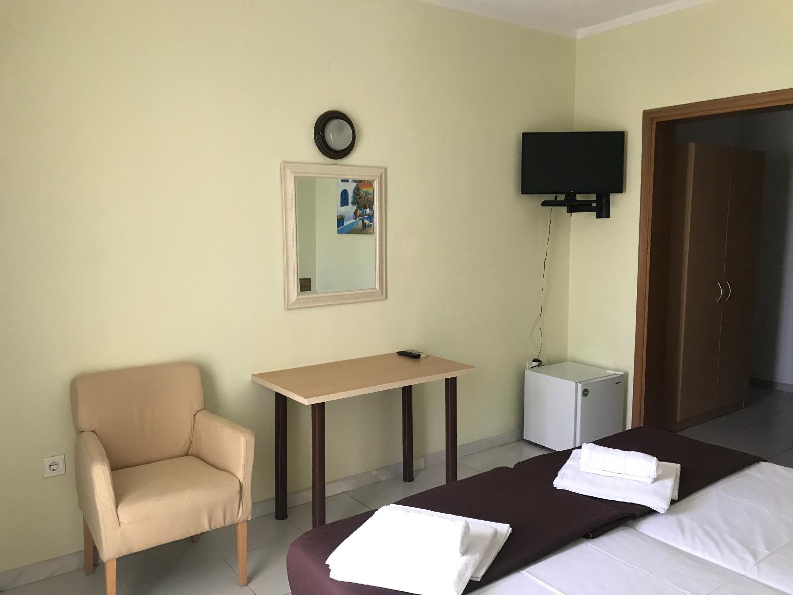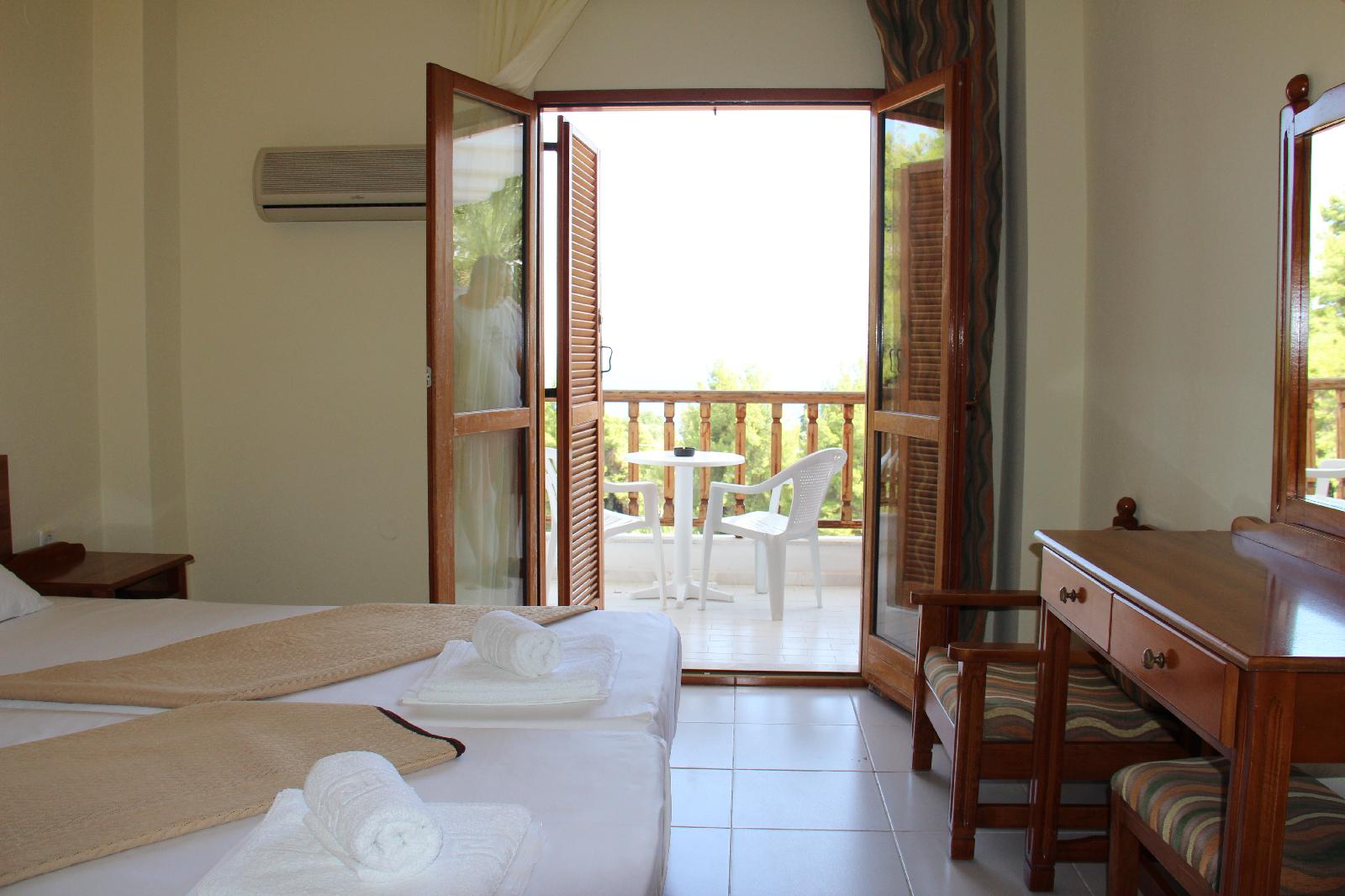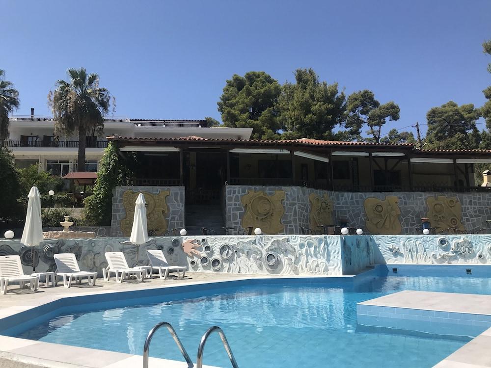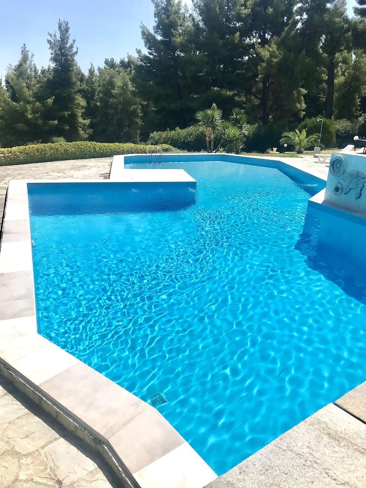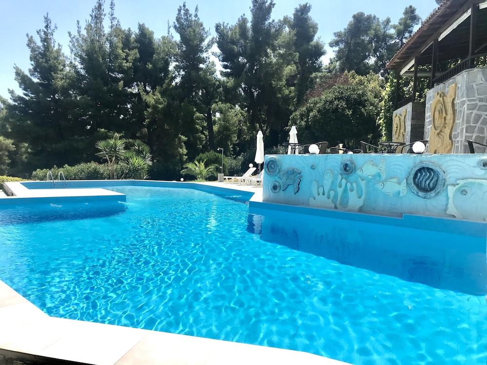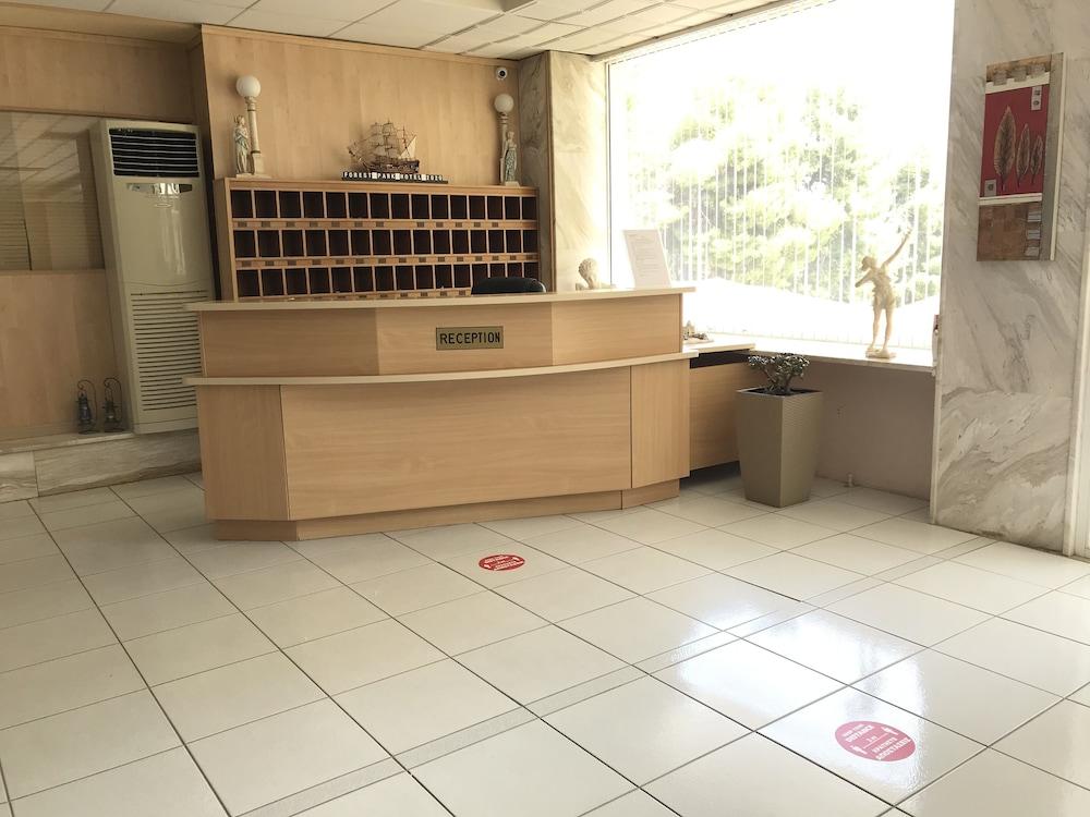 Situated in a garden 200 metres from the Blue Flag beach of Kryopigi in Chalkidiki Forest Park Hotel features a swimming pool. The hotel's Greek restaurant serves a buffet breakfast and traditional dinner.A balcony overlooking the mountain or the sea and free Wi-Fi access are featured in all rooms at the Hotel Forest Park. Each unit has a fridge and air conditioning. A private bathroom with shower and hairdryer is standard.Drinks and coffee are served at the pool bar and in the lounge room with the fireplace. A children's swimming pool is available for younger guests.The centre of Kryopigi with shops and taverns is 1.5 km from the hotel. The lively resort of Kallithea is 2.5 km away. Thessaloniki International Airport is within 80 km. Free private parking is possible at the hotel.