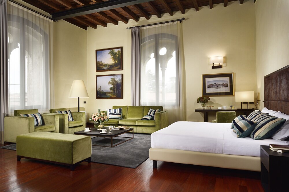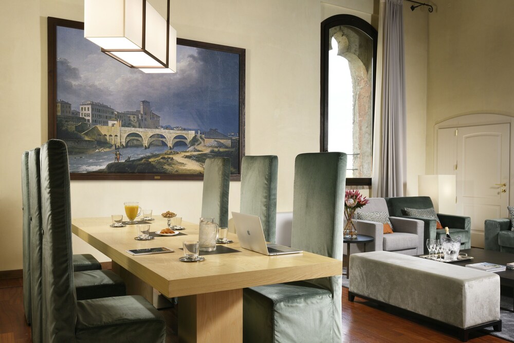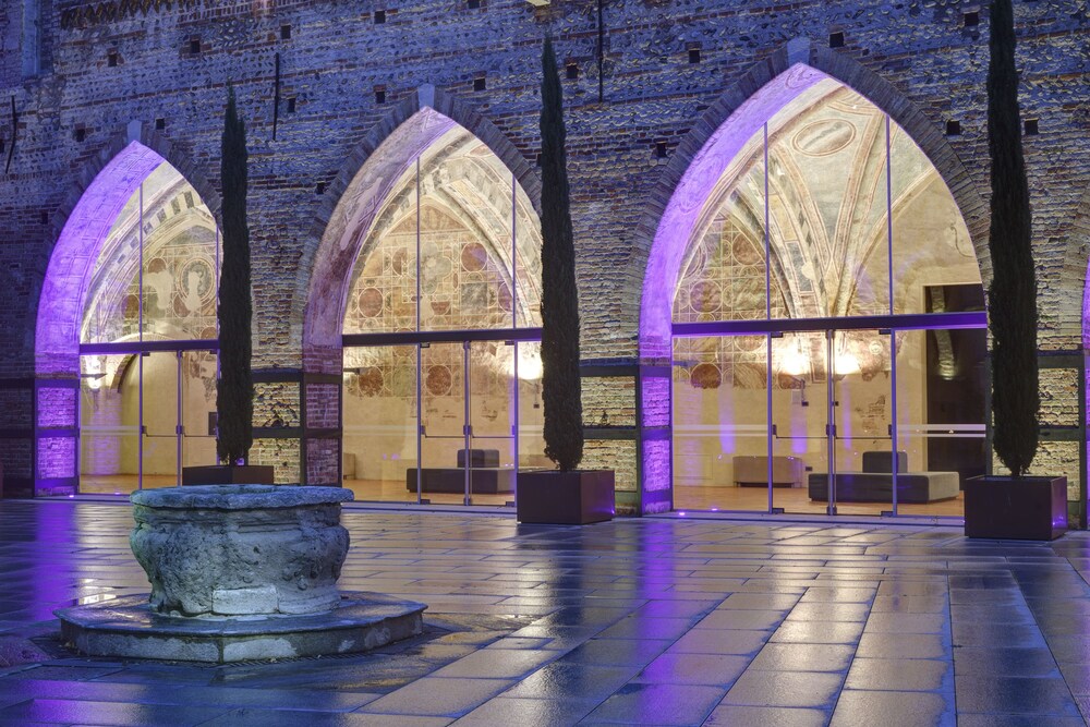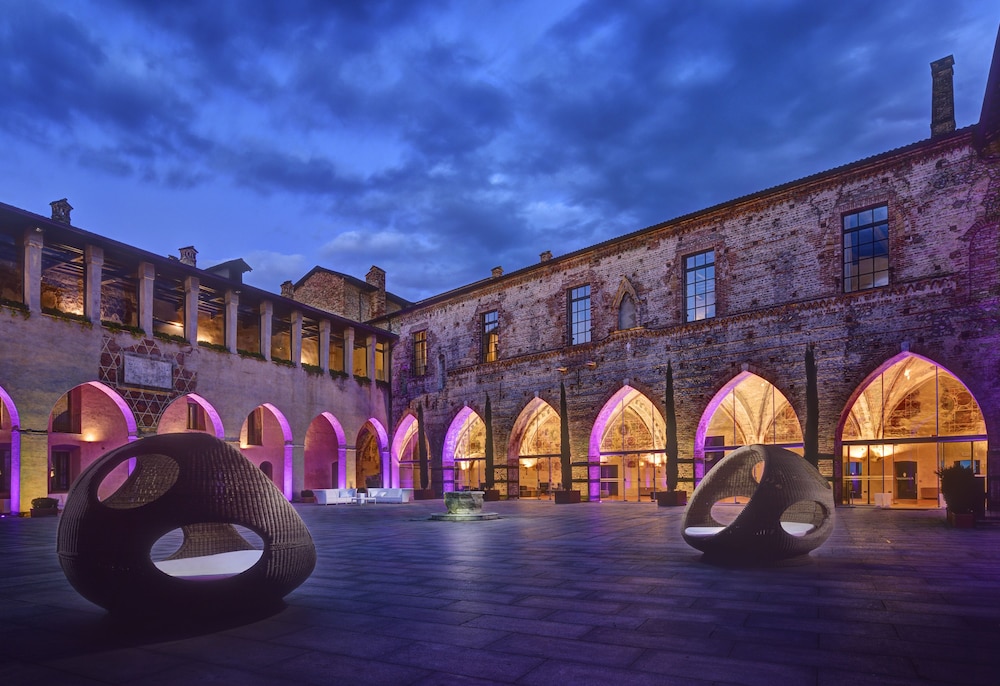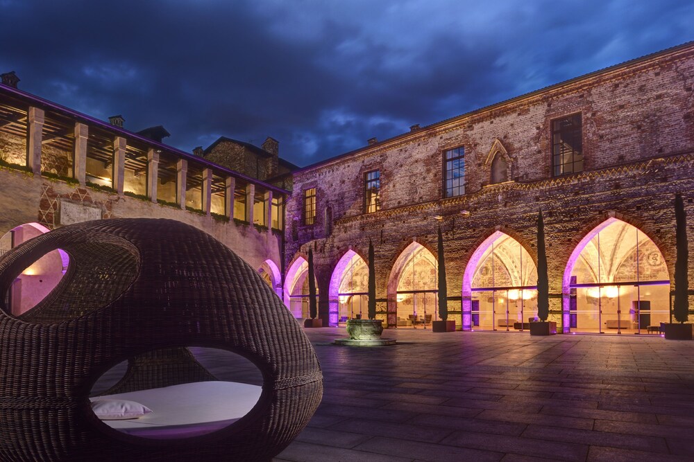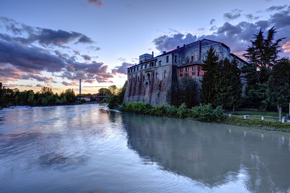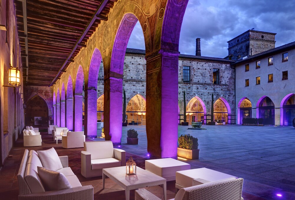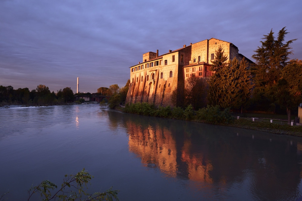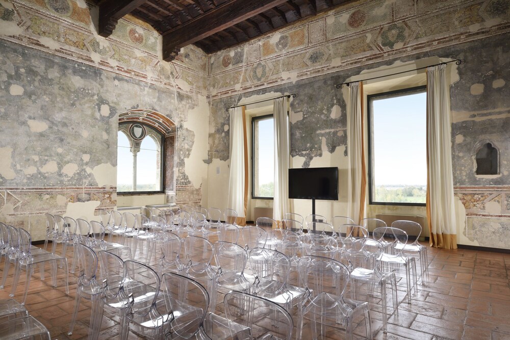 This precious complex, offers the ideal location for relaxation, intimacy and concentration.All the rooms come with modern, minimalist and functional furnishings that blend seamlessly with the historical building. The suites are split into two categories. The “Business” suites are designed especially to meet the needs of business travellers. The “Romantic” suites, on the other hand, are designed for leisure trips, and feature a large open plan area that overlooks the river through ancient double lancet windows.The restaurant, set in the Duke's completely frescoed apartments, seats 60 and offers first-rate traditional Italian cuisine. Thus, the Hotel, a setting of great charm, provides its best halls for truly sophisticated dinners. Located 30 kilometres from Milan, 25 from Bergamo, 27 from Monza and 23 from Lodi. The Fortezza Viscontea is situated in the heart of Lombardy.
