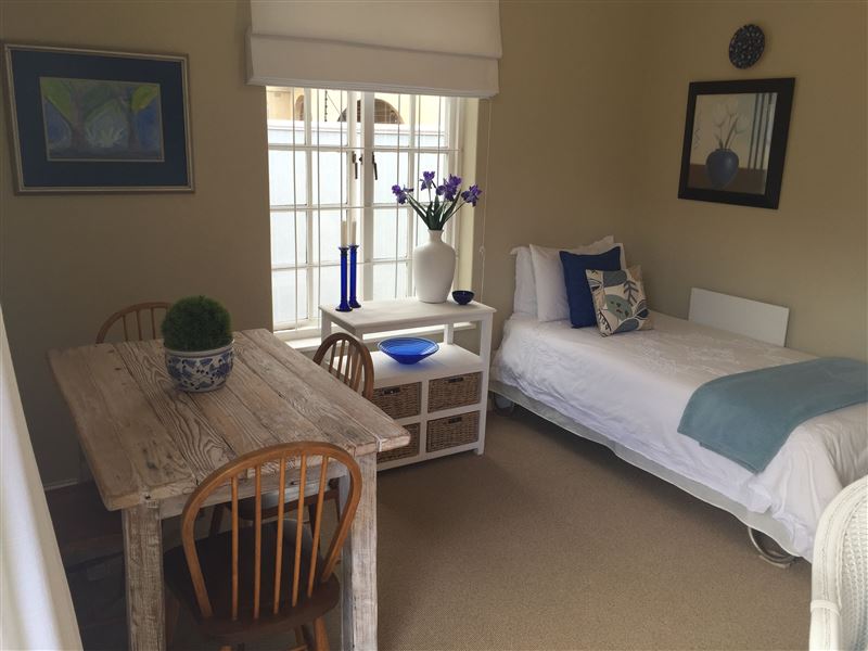 Four Furlongs is situated in the leafy suburb of Constantia, with amazing views of the greenbelt and the mountains. It offers a great rural feel on the edge of the city with limited DIY breakfasts.The charming open-plan cottage has a queen-size bed and a single bed with a separate toilet. There is an equipped kitchenette (Microwave, Fridge, Electric Frying Pan, Kettle Toaster), a table with four chairs, DSTV and Wi-Fi Internet access and Weber Braai for barbecues. The property also offers guests a swimming pool, trampoline, Children's jungle Gym, tennis court, and secure parking.<