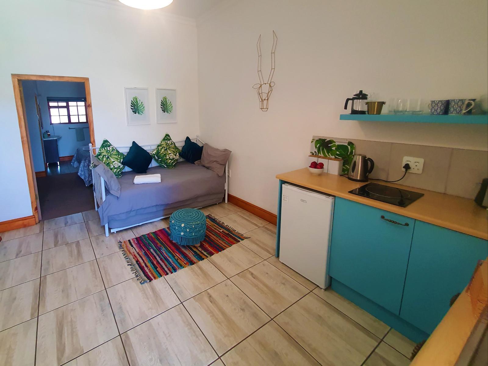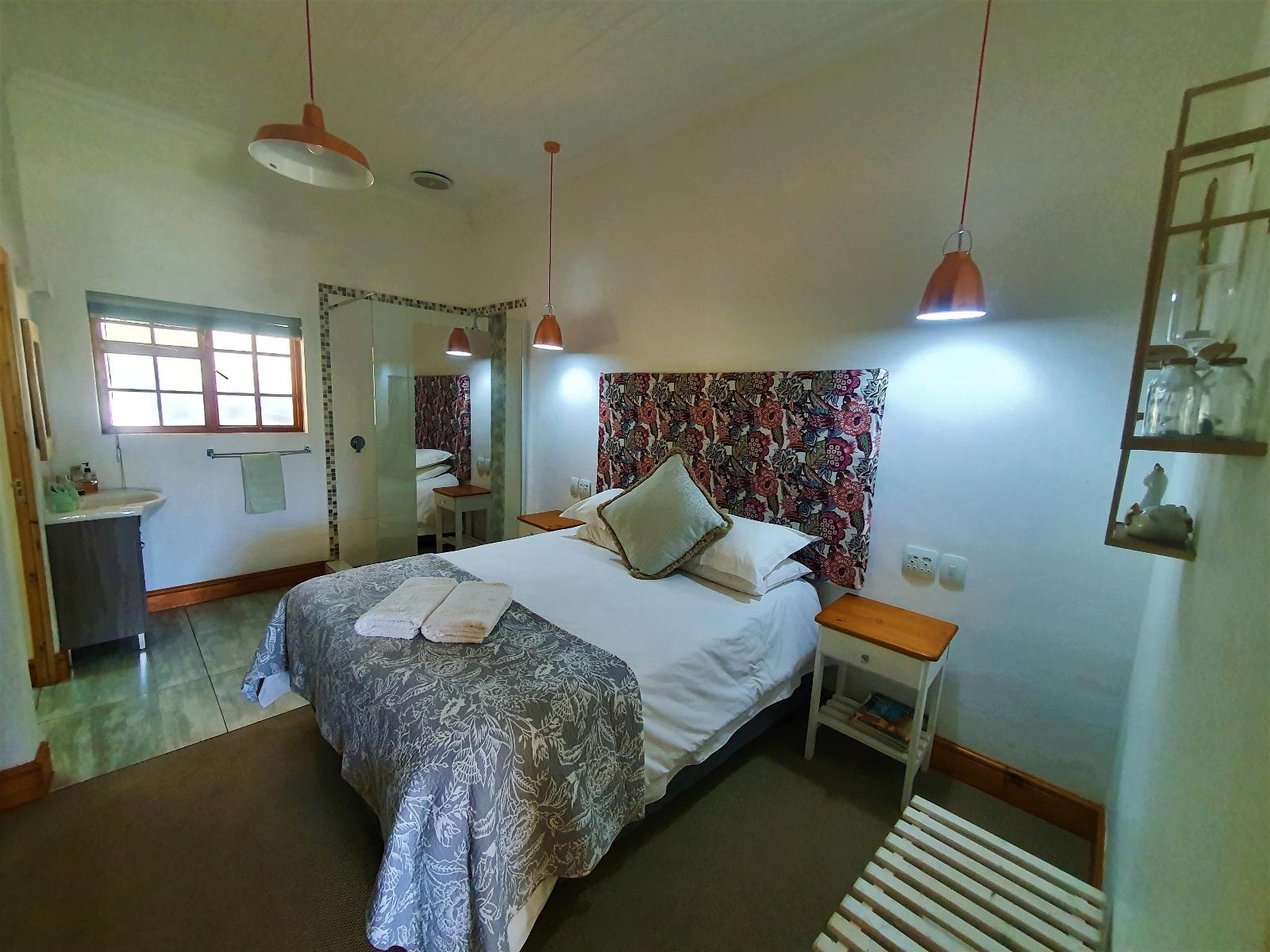 Franschhoek Farm Cottages have 6 cottages. 5 of them are on Bourgogne, which are 1km out of town and 1 cottage is on Montagne, which is 3 km out of town. Songold Cottage 1 km from town: this beautiful luxury apartment is on Bourgogne farm. The decor is stylish, yet functional, with a touch of gold. The queen bed comes with crisp clean white linen and is complimented by different shades of sand & stone. The en-suite bathroom has a big shower. We provide soft, white bath sheets. The kitchen is equipped with a fridge, microwave and induction plate. Come and enjoy a good cup of coffee