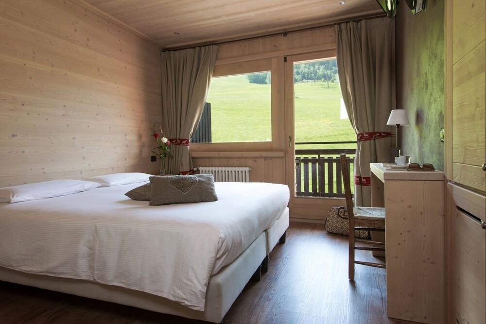 The hotel is situated in front of Bormio's Ciuk cable car, just outside the limits of the Stelvio Natural Park which is 22 km away. It is a short walk along a beautiful promenade to the centre of Bormio. Livigno can be reached in around 45 minutes by car, whilst the ski resort of Saint Moritz is about an hour and a half away by car.This family-friendly hotel offers full views of the ski slopes. It provides outdoor parking and features an indoor garage. It is air-conditioned and welcomes guests in its lobby at the 24-hour reception which offers a 24-hour check-out service, a hotel safe and currency exchange facilities. A cloakroom, lift access and newspaper stand also feature, as does a hairdressing salon. An auditorium and conference facilities are available for those looking to hold an event at the hotel, whilst recreational amenities include a casino, games room, TV lounge and disco. Younger guests can let off steam at the children's playground. Food and drink are served at the café, bar, pub and restaurant. Guests can stay connected during their stay thanks to the wireless Internet access provided. Room and laundry services are also available and there is a bicycle hire service provided for guests looking to explore the local area on two wheels.The convenient en suite rooms come with a shower and hairdryer. A double or king-size bed features as standard, as does a telephone and satellite/cable TV. In-room Internet access is provided and there is a safe for the storage of valuables. Central heating and individually regulated heating are fitted in the accommodation units. Guests can also relax on their room's balcony or terrace.