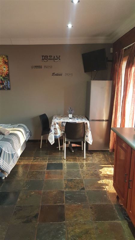 Imagine walking in the serene wilderness of Pretoria North (Suburb). At Garden Studio with Pool guests can unwind and feel at ease during their stay.Garden Studio with Pool sleeps two guests in a double bed. The bathroom contains a shower, toilet and basin. The kitchenette is ideal for basic self-catering and features a two-plate gas stove, microwave, kettle, toaster and fridge. Garden Studio with Pool has a fan, hair dryer, Wi-Fi, TV and a DVD player. Braai facilities and parking on the premises are added extras. Pretoria North attractions in