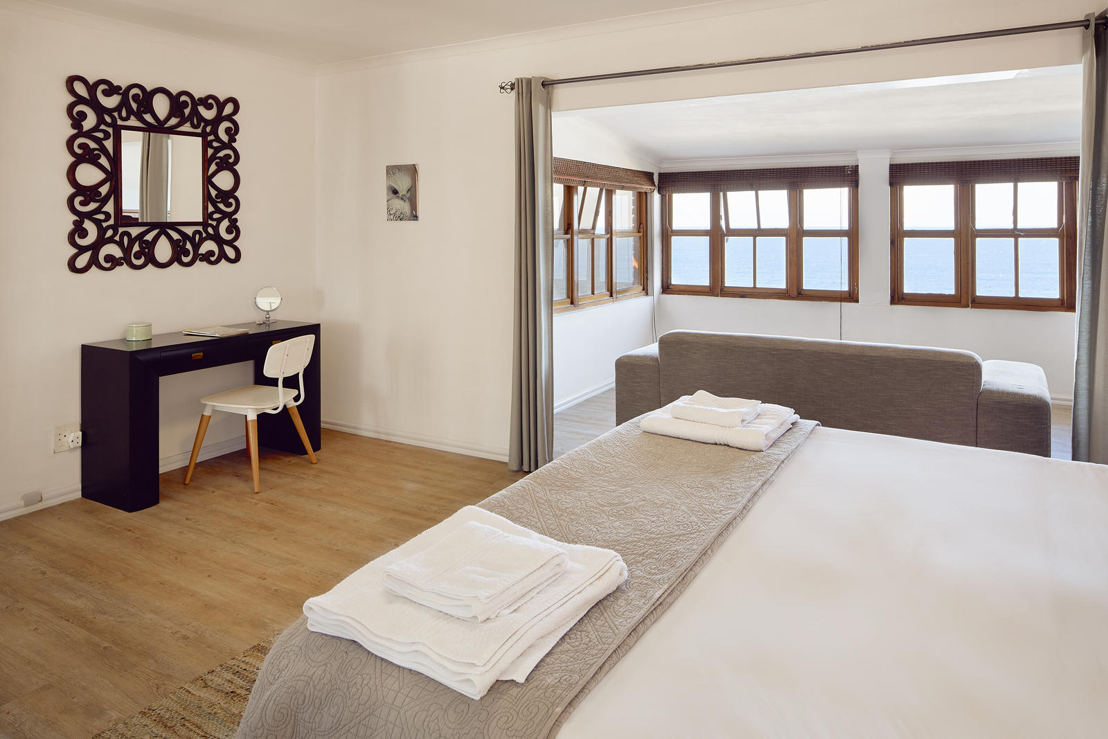 Garvies Beach is one of The Bluff’s best-kept holiday secrets. It offers stretches of unspoiled coastline and gently rolling waves. It is also home to Garvies Surf House, a great option for water-loving groups visiting this part of Durban.This spacious house has three well-appointed bedrooms, of which one has a king-size bed and an en-suite bathroom. One room has a queen-size bed and one room has a king-size bed, which can be converted into two single beds. These two rooms make use of an additional bathroom. There is a fourth en-suite bedroom separate from the house. It has a