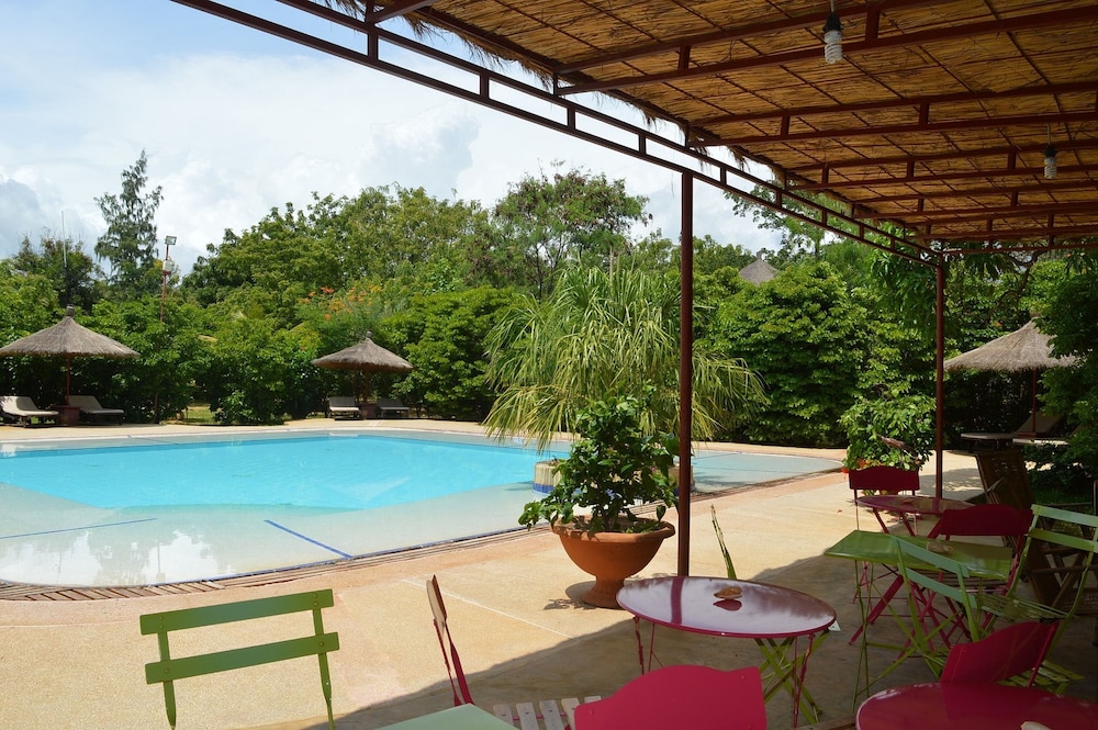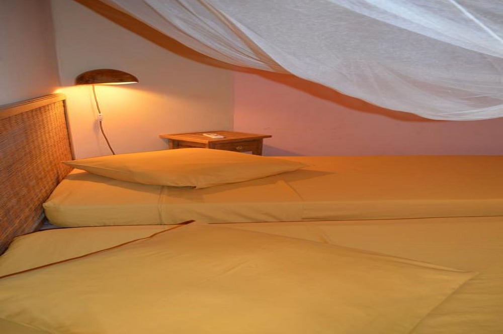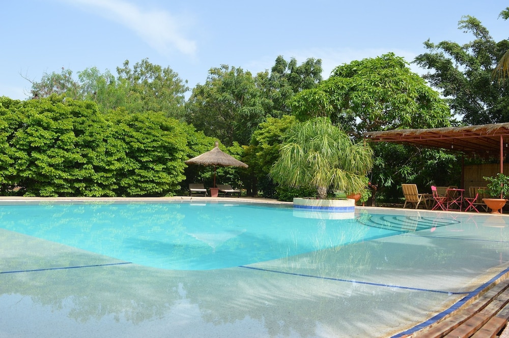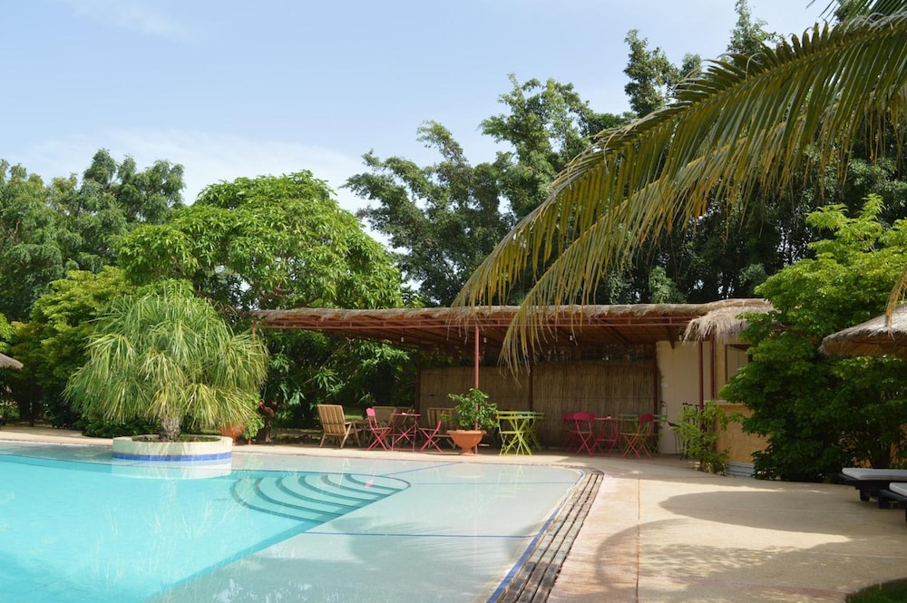 Set in the fishing village of Ngaparou this property is 6 km from Saly. You can explore the local markets relax by the outdoor swimming pool or walk to the beach in 2 minutes.Gîte l'Anacardier offers 5 African-style bungalows with a private terrace and views of the 7000m² garden and the on-site bar. Each one has 2 independent rooms and is air-conditioned and equipped with mosquito nets free Wi-Fi and a private bathroom.A continental breakfast is available every morning while French and Senegalese cuisine is offered in the private terrace. You can also prepare meals in the bungalow's kitchenette or use the on-site BBQ facilities.Bicycle rental a souvenir shop and day trips are some of the other facilities at this property. Free private parking is available on site and Mbour is 14 km away.