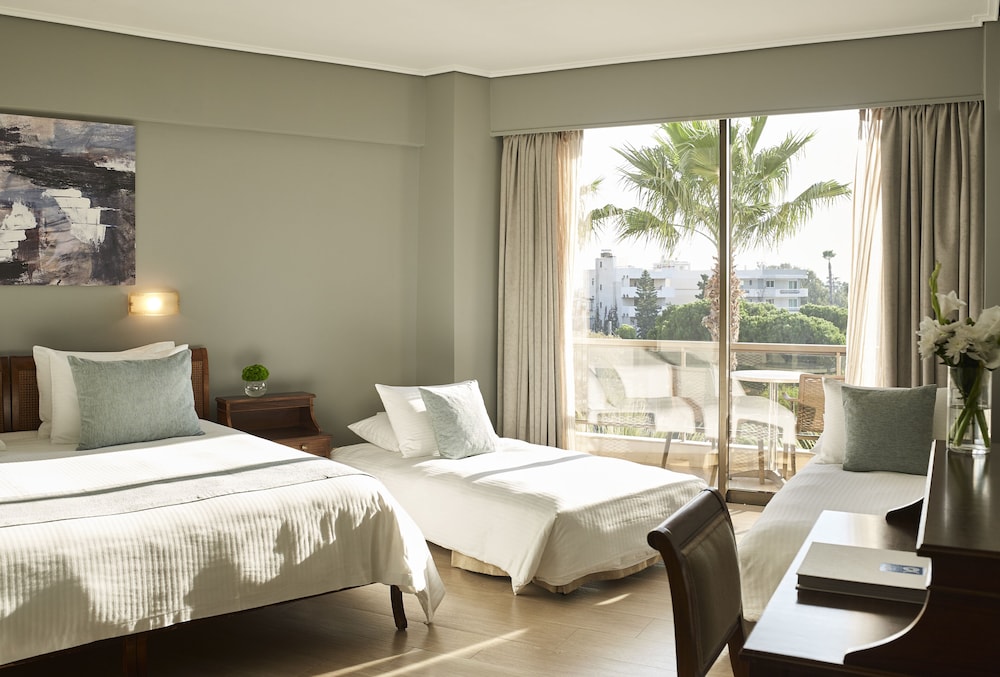 Golden Sun Hotel enjoys a prime location right across Voula Beach and near Astir Beach and within easy reach from Glyfada's shopping centre. It is direct linked with Eleftherios Venizelos International Airport via bus route X96.This 4-star hotel offers guests a 24-hour front desk service coupled with proximity to activities for all. Water sports facilities an extensive shopping centre Glyfada's prestigious golf course and an abundance of restaurants and bars can be found near Golden Sun Hotel.All rooms offer a warm and hospitable atmosphere combined with modern amenities including private bathroom air conditioning and flat-screen TV.Guests staying at the hotel can relax by the blossomed garden by the pool taste fine Mediterranean cuisine in the restaurant or enjoy a drink at the main bar.A bus stop lies within 50 metres from the property providing links to Athens and Piraeus. Free private parking is available in the premises.