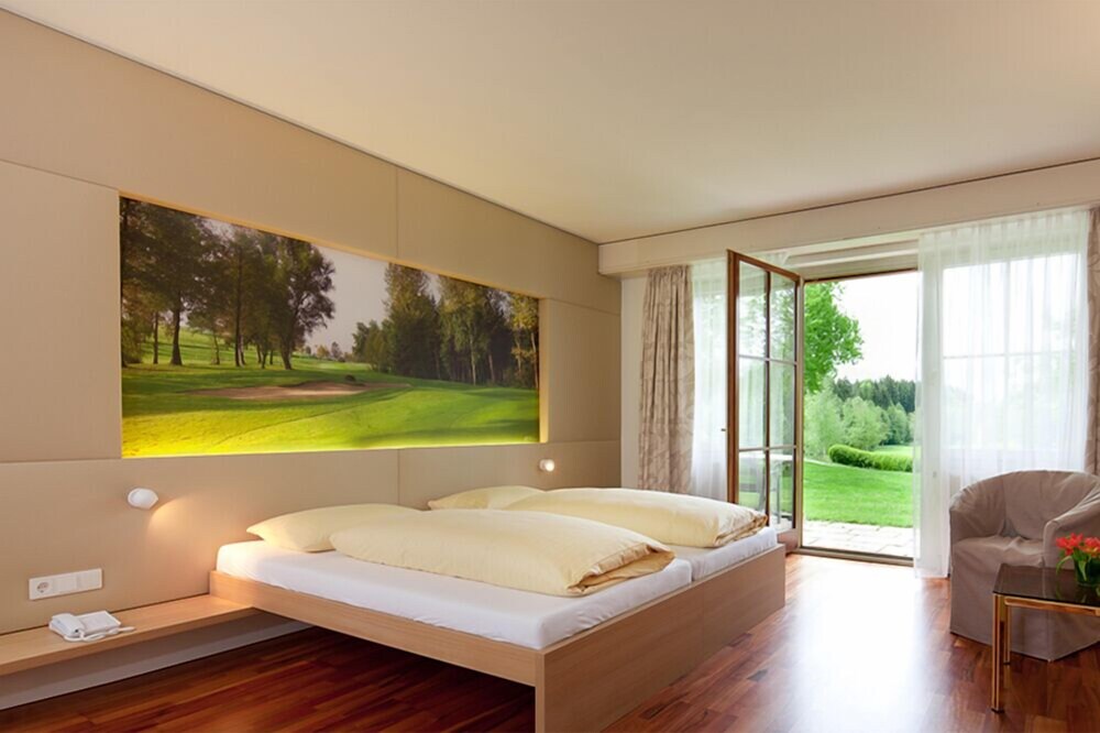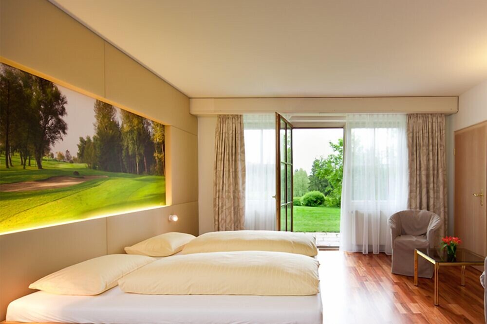 Just 7 km from the shores of Lake Constance, this hotel in Weißensberg offers elegant accommodation and an inviting spa area on the 18-hole Bodensee Weißensberg golf course.Charming rooms equipped with high-quality furniture and marble bathrooms await you at the Golfhotel Bodensee. Furthermore, all of the rooms feature wonderful views of the golf course.A complimentary breakfast buffet is served each morning at the Golfhotel Bodensee, ensuring a pleasant start to the day. In the evenings, you can try tasty regional and Italian cuisine in the hotel restaurant.Relax and pamper yourself in the Golfhotel Bodensee's spa area, which features an inviting sauna and a herbal steam room. A range of cosmetic treatments are also available here.Free Wi-Fi internet access is available in all public areas of the Golfhotel Bodensee, allowing you to check your e-mails and surf the internet for free.