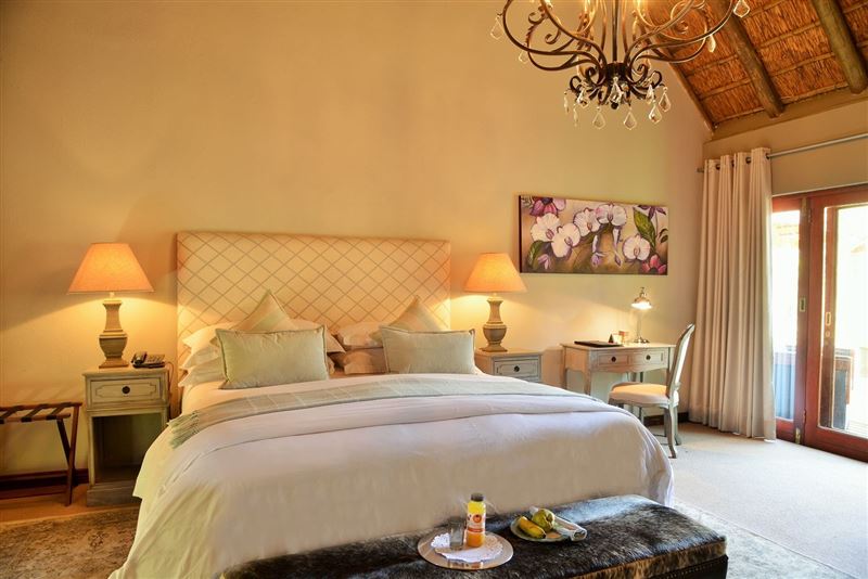 Situated in Silver Lakes Golf Estate, Pretoria, this exquisite 4 Star guest house echoes the classical African Bush veld appeal of a typical Thatched Roof Villa, affording spectacular views of the indigenous bush veld as well as the pristine fairways and inland lakes of an exclusive 18-hole golf course where you can improve your handicap and enjoy sun downer drinks at the clubhouse afterwards.
