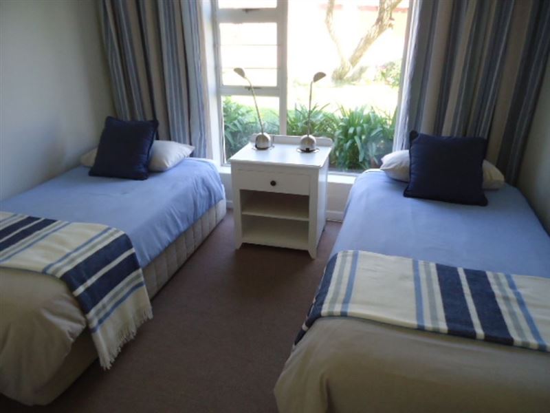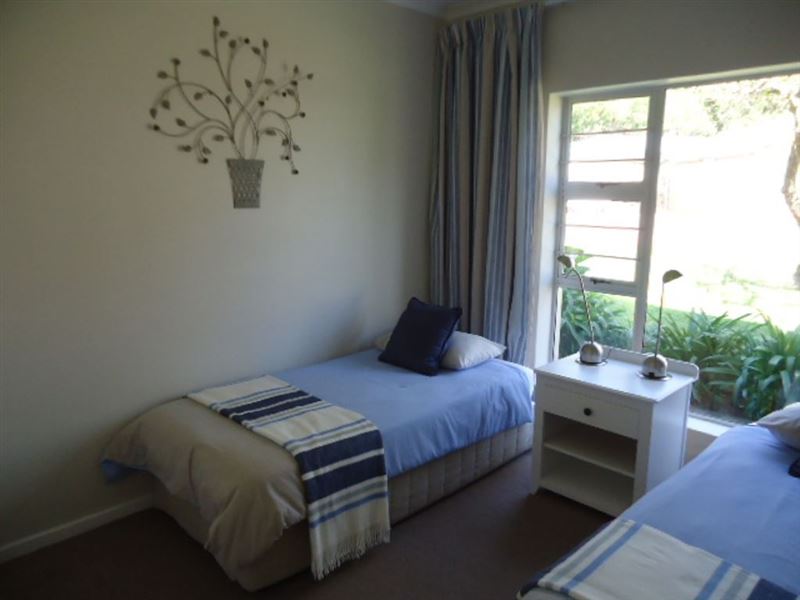 This stylish, modern unit is situated in The Goose Valley Golf Estate which is on the Garden Route close to Plettenberg Bay, Keurboomstrand and Keurbooms River.This unit, one of a few, has distant sea and lagoon views and overlooks beautifully manicured lawns. It sleeps a maximum of four guests (including children). The main bedroom with distant sea views leads out onto the outdoor patio and has two single beds (which may be pushed together to form a king-size bed) and an en-suite bathroom with shower, toilet and basin. Bedding and towels are provided but please bring your own be