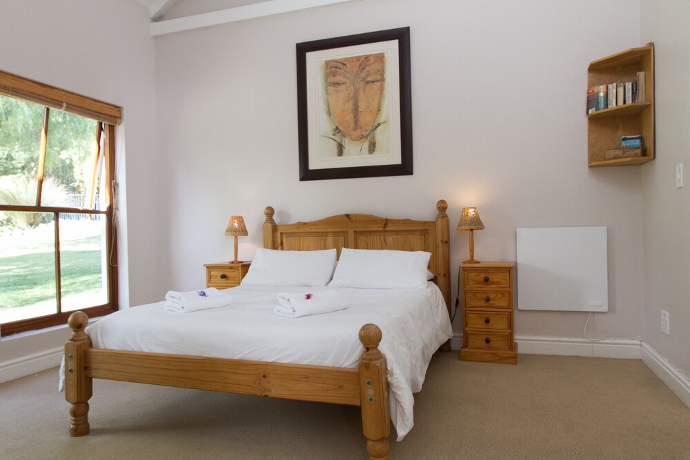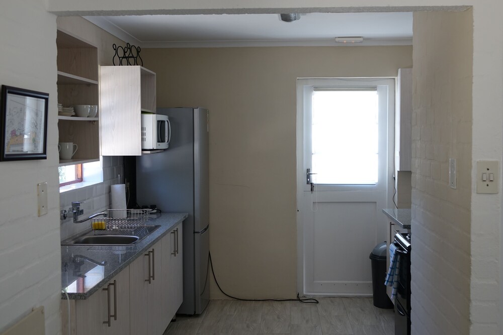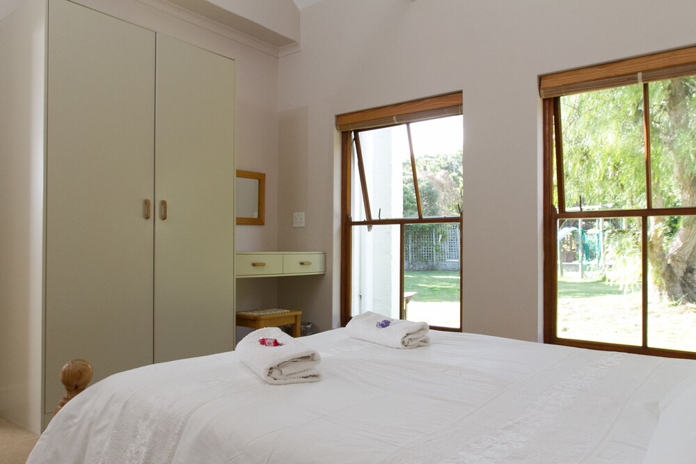 Tucked away between sheltering trees lies a hidden Noordhoek gem: Goose Green Lodge. On offer you will find a choice of semi self-catering accommodation room only as we are 150m away from the delightful Elies's Deli where you can have a scrumptious breakfast, or two self-catering two-bedroom cottages, or a lovely brand new family self-catering studio (Robins Nest) ensuring privacy and flexibility, while still offering all the little luxuries enjoyed by B&B guests. We have beautiful views of the mountains around us and the garden not only contains a brand new infinity pool and braai (BBQ) facil