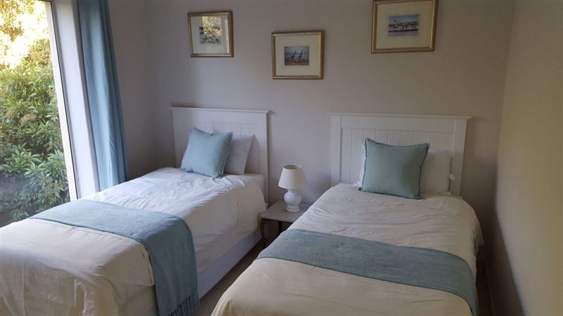 Goose Valley FF5 is set in the tranquil part of Goose Valley Golf Estate, Plettenberg Bay, with unsurpassed weather conditions and leisure facilities. This completely renovated, upstairs self-catering holiday accommodation, comprises two bedrooms, both with en-suite bathrooms, an open-plan lounge, dining room and a fully equipped kitchen with washing machine. The main bedroom has a queen-sized bed, while the second bedroom has two single beds. Both en-suite bathrooms have showers. Guests have access to secure, dedicated on-site parking, as well as a charming sunny Nor