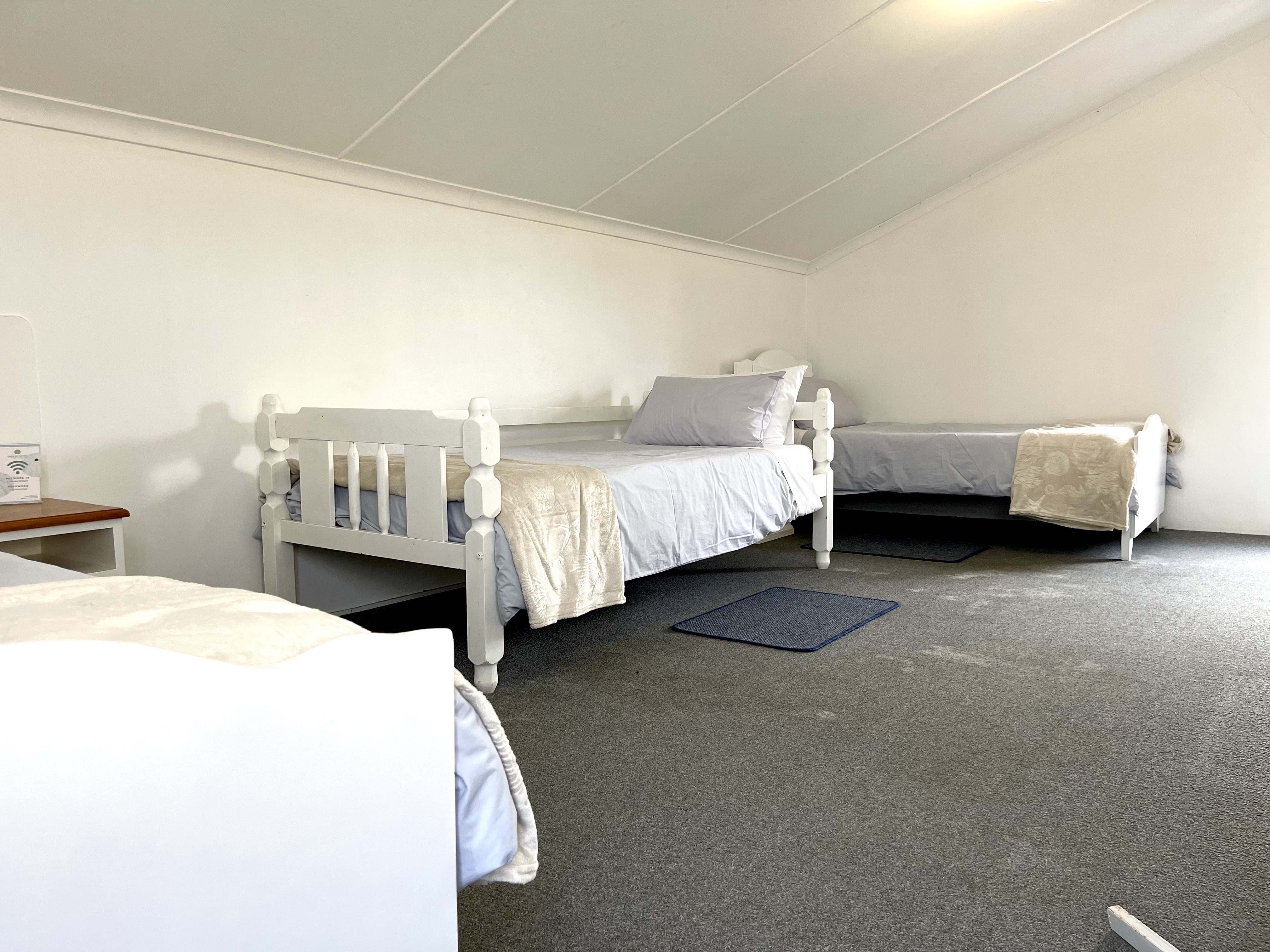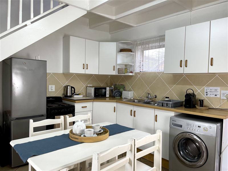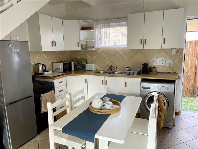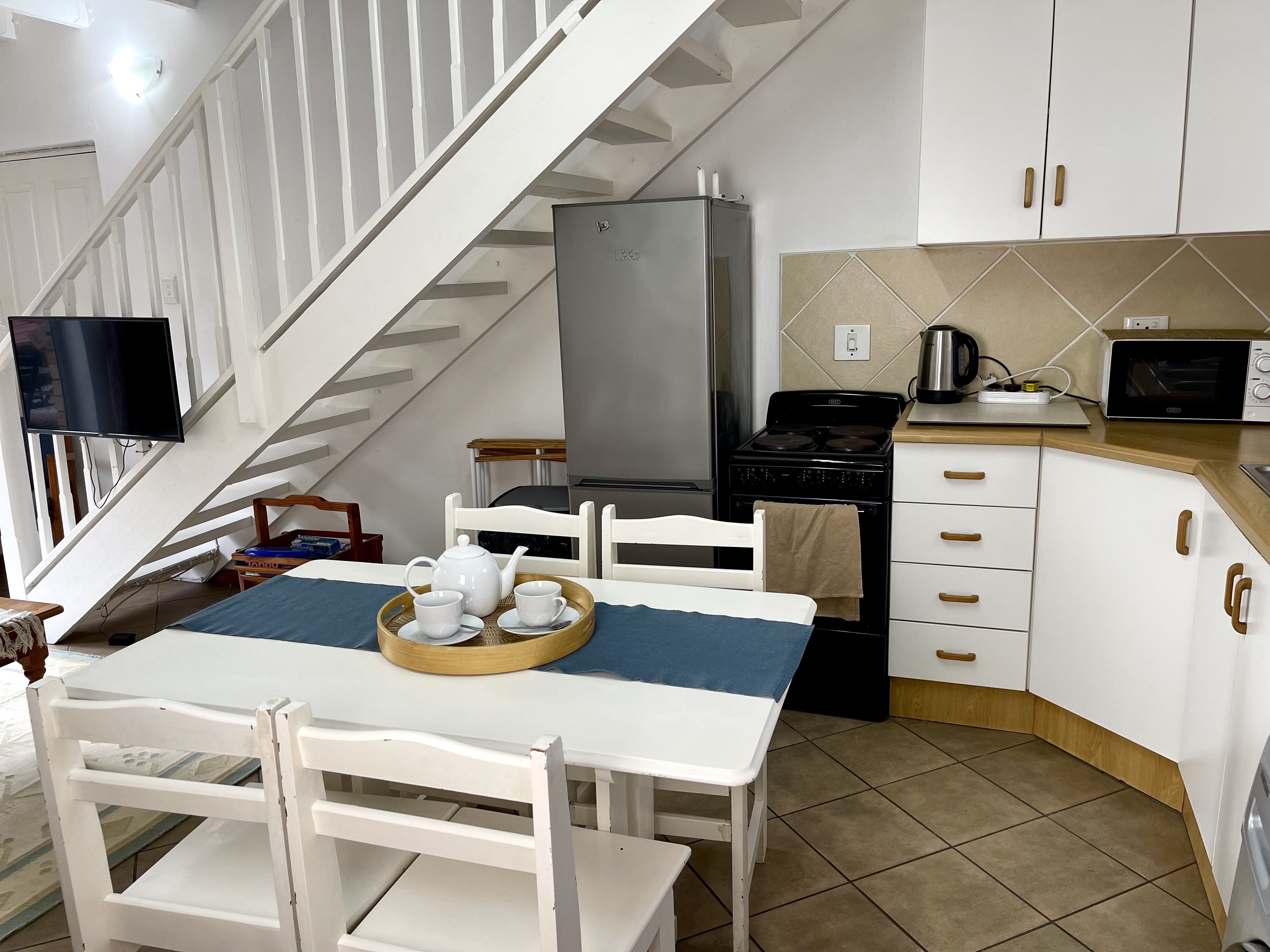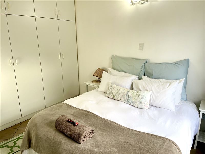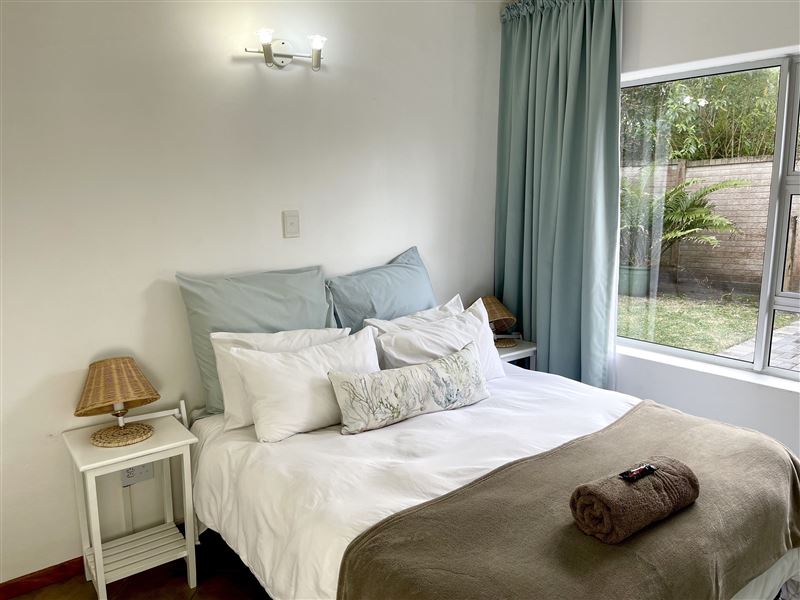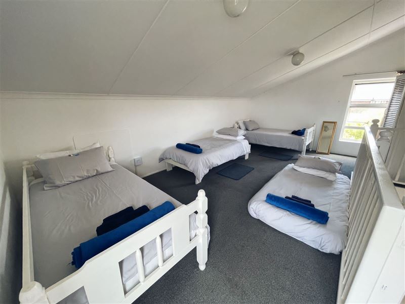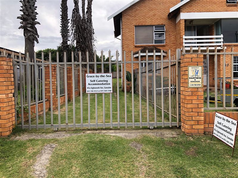 Grace-by-the-Sea offers one self-catering unit situated in Gonubie, East London. It is one block from the sea and close to all amenities. The property is fully secured with a fence and a lock-up gate, with parking available. This is a comfortably furnished self-catering unit with two bedrooms and one bathroom. The main bedroom has a double bed and the second bedroom has three single beds. There is an open-plan living area with a TV and a fully equipped kitchen. There is a wooden staircase, with a safety gate at the top, leading to the second bedroom. All linen and towels are p