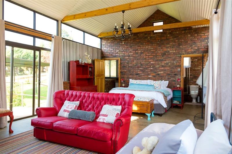 Garnet is a beautiful home just a short walk from the beautiful town of Clarens town center. The luxury accommodation is ideal for couples.It consists of two detached units with air conditioning, DStv and Wi-Fi. Each unit is equipped for basic self-catering and has braai facilities.The property is fully fenced and has a remote control gate from Collett Street and sliding gate from Park Street. A carport with space for three cars and one open parking space for the Gray unit can be reached from Collett Street. From Park Street, guests can access a single carport shed and