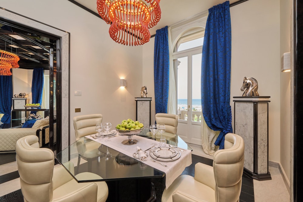 Located in Viareggio (Versilia), Grand Hotel Principe di Piemonte is minutes from Bagno La Pace and Bagno Irene. This hotel is within close proximity of Bagno Sauro and Pineta di Ponente.Rooms Make yourself at home in one of the 106 air-conditioned rooms featuring minibars and plasma televisions. Complimentary wireless Internet access keeps you connected, and satellite programming is available for your entertainment. Private bathrooms with bathtubs or showers feature complimentary toiletries and bidets. Conveniences include safes and desks, and housekeeping is provided daily.Amenities Relax at the full-service spa, where you can enjoy massages, body treatments, and facials. You can take advantage of recreational amenities such as a health club, an outdoor pool, and a sauna. Additional amenities at this hotel include complimentary wireless Internet access, babysitting/childcare (surcharge), and wedding services.Dining Grab a bite at one of the hotel's 2 restaurants, or stay in and take advantage of room service (during limited hours). Relax with your favorite drink at a bar/lounge or a poolside bar.Business, Other Amenities Featured amenities include express check-in, express check-out, and complimentary newspapers in the lobby. A roundtrip airport shuttle is provided for a surcharge (available 24 hours).