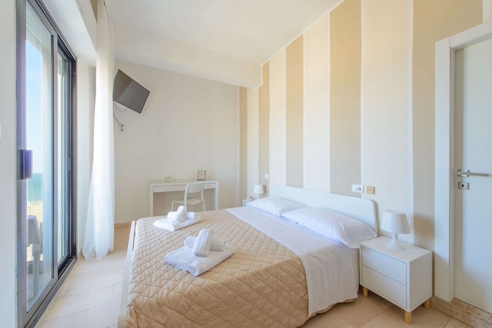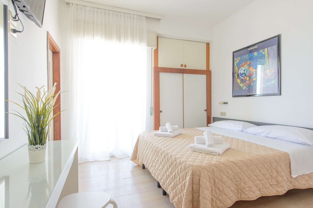 With a stay at Hotel Grand Meeting in Rimini (Rivazzurra), you'll be close to Fiabilandia and Arch of Augustus. This beach hotel is within close proximity of Centro Congressi SGR and Multiplex le Befane.Rooms Stay in one of 44 guestrooms featuring LED televisions. Rooms have private balconies. Complimentary wireless Internet access is available to keep you connected. Bathrooms have complimentary toiletries and hair dryers.Amenities Enjoy recreation amenities such as an outdoor pool or take in the view from a rooftop terrace. Additional features include complimentary wireless Internet access and concierge services.Dining Satisfy your appetite at a coffee shop/café serving guests of Hotel Grand Meeting.Business, Other Amenities Featured amenities include complimentary newspapers in the lobby, a 24-hour front desk, and luggage storage. Free self parking is available onsite.