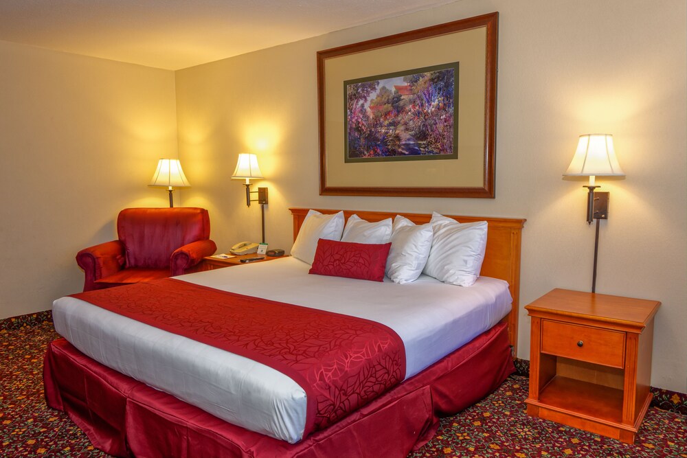 The hotel also offers a 24-hour indoor pool with spa tub, a restaurant and lounge, and complimentary airport transportation.