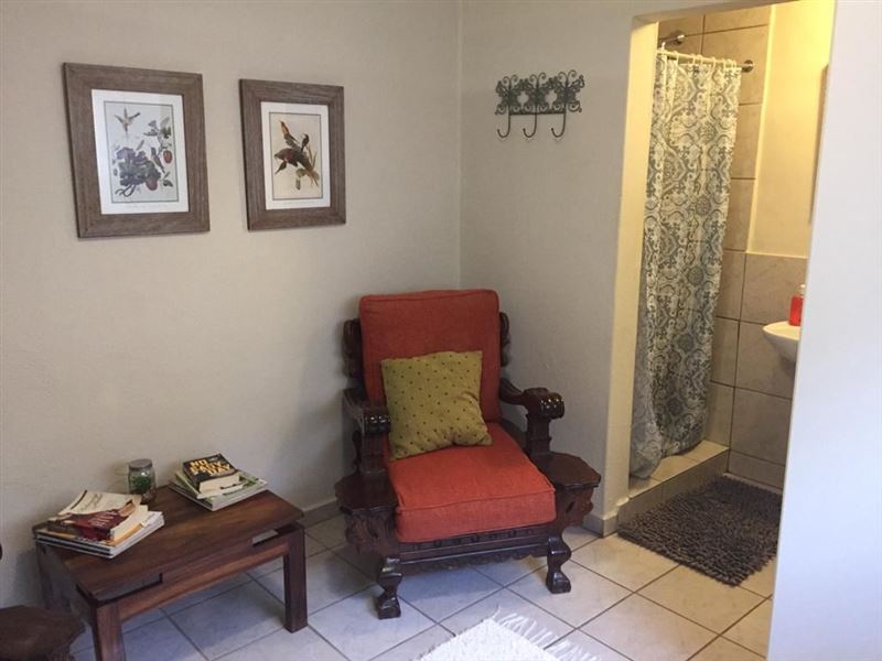Green Fields Cottage is a lovely, safe and clean semi self-catering cottage located on a private residence but with its own separate entrance, in a leafy suburb with prolific birdlife and large indigenous trees. The property is centrally situated and close to the Nelspruit Central Business District, hospitals, and shopping centers.Green Fields Cottage can accommodate up to two guests and contains two single beds, a work desk with free Wi-Fi, and a separate shower, toilet, and washbasin. The cottage has a small kitchenette that is equipped with a kettle, microwave, fridge, and cutle