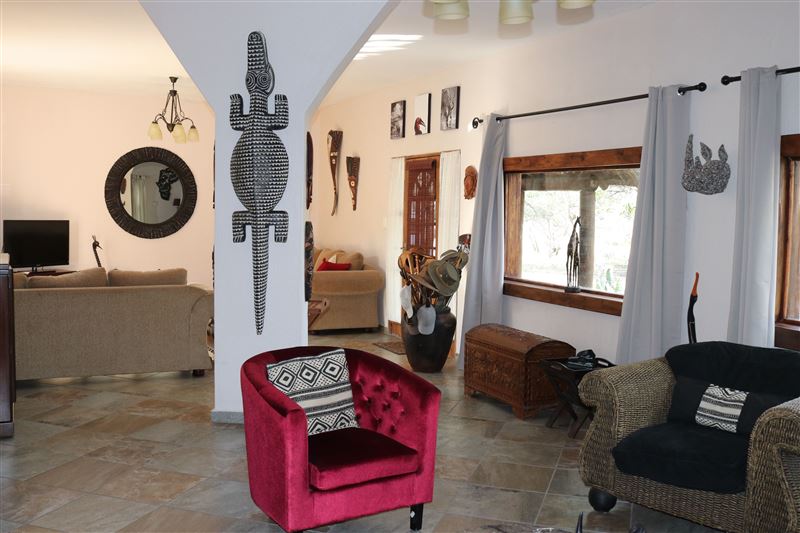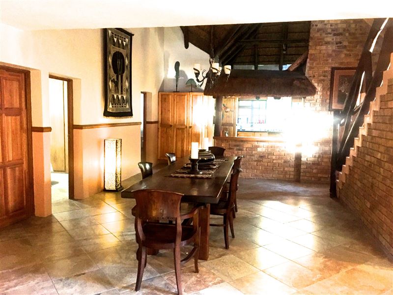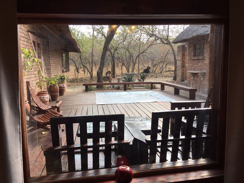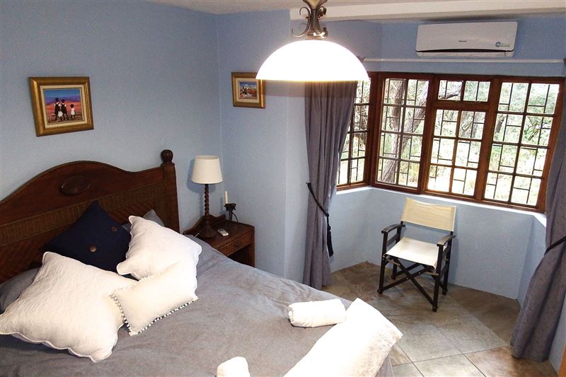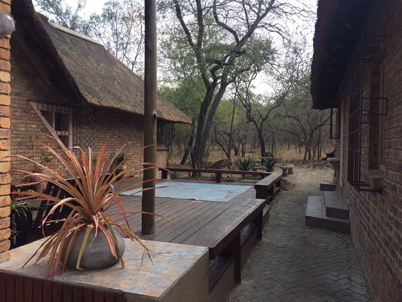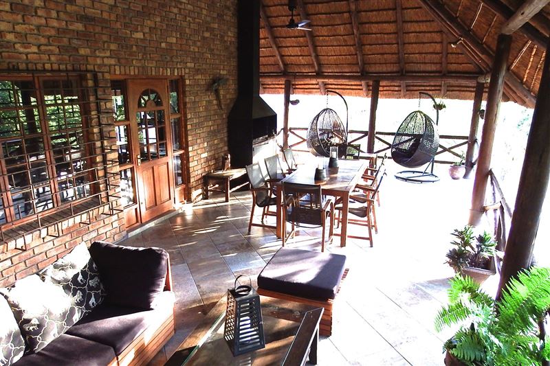 A lovely three-bedroom, fully air-conditioned house with splash pool and a four poster bed. It has a large viewing deck with a built-in barbecue where you are able to watch animals including zebra, warthog, various antelope, monkeys and many more in the garden.We have tried to think of everything a family or a group of friends could need. There is full deck furniture with a dining table with eight chairs for all fresco living so that you can listen to the lions roaring and hippos grunting from inside the Kruger National Park while you dine. The house is only a 100 me