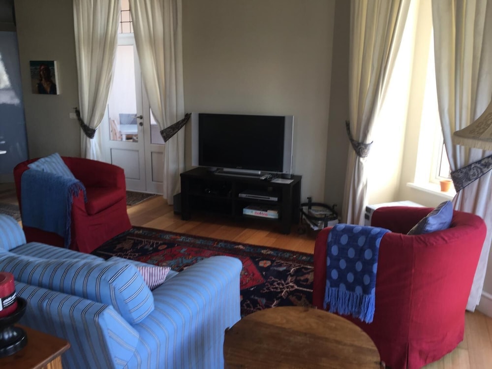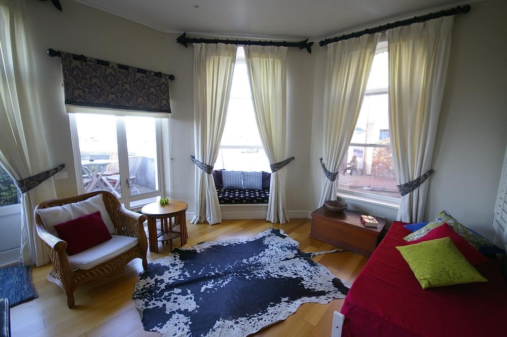 A Seaside Holiday with a Difference, imagine waking up in a lovingly restored old-world apartment, to a breath-taking view of the Kalk Bay Harbour. Tumbling out of bed to pop across the street for freshly baked croissants from the Olympia Bakery, that well-loved Cape Town landmark. Imagine taking breakfast on your private undercover patio, wooden deck overlooking the harbour or on the spacious and sunny window sill, watching the boats and enjoying bustle of the quaint village streets. Beyond that, the majestic mountains of Fish Hoek and Simon’s Town hug the coastline and the blue, blue ocean