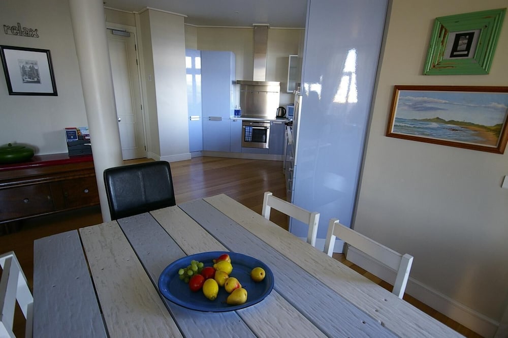 The Apartment at Harbour Place extends over a sizeable portion of the lower west wing of the original New King’s Hotel on Main Road, Kalk Bay. Inspired by the unfussy, elegant designs of the Thirties, its interior is an eclectic mix of Art Deco and modern pieces, cleverly combined to create a space where you can relax and unwind, without ever distracting from its truly special location. Expect to find high ceilings and exquisitely arched lead-glass windows framing a charming and unusual view of the Harbour. Feast your senses on uncompromising luxury and quality, whether you’re padding on the Tasmanian Teak hardwood floors , complete with under floor heating for colder winter nights or snuggling into 100% Percale, hand-embroidered Egyptian bed linen. There are two large bedrooms at Harbour Place. The main bedroom has a king-sized bed with bathroom and toilet en-suite bathroom, the second bedroom has two single beds with shower and en-suite. A lock-up safe and plenty of cupboard space ensure a safe and clutter-free stay.