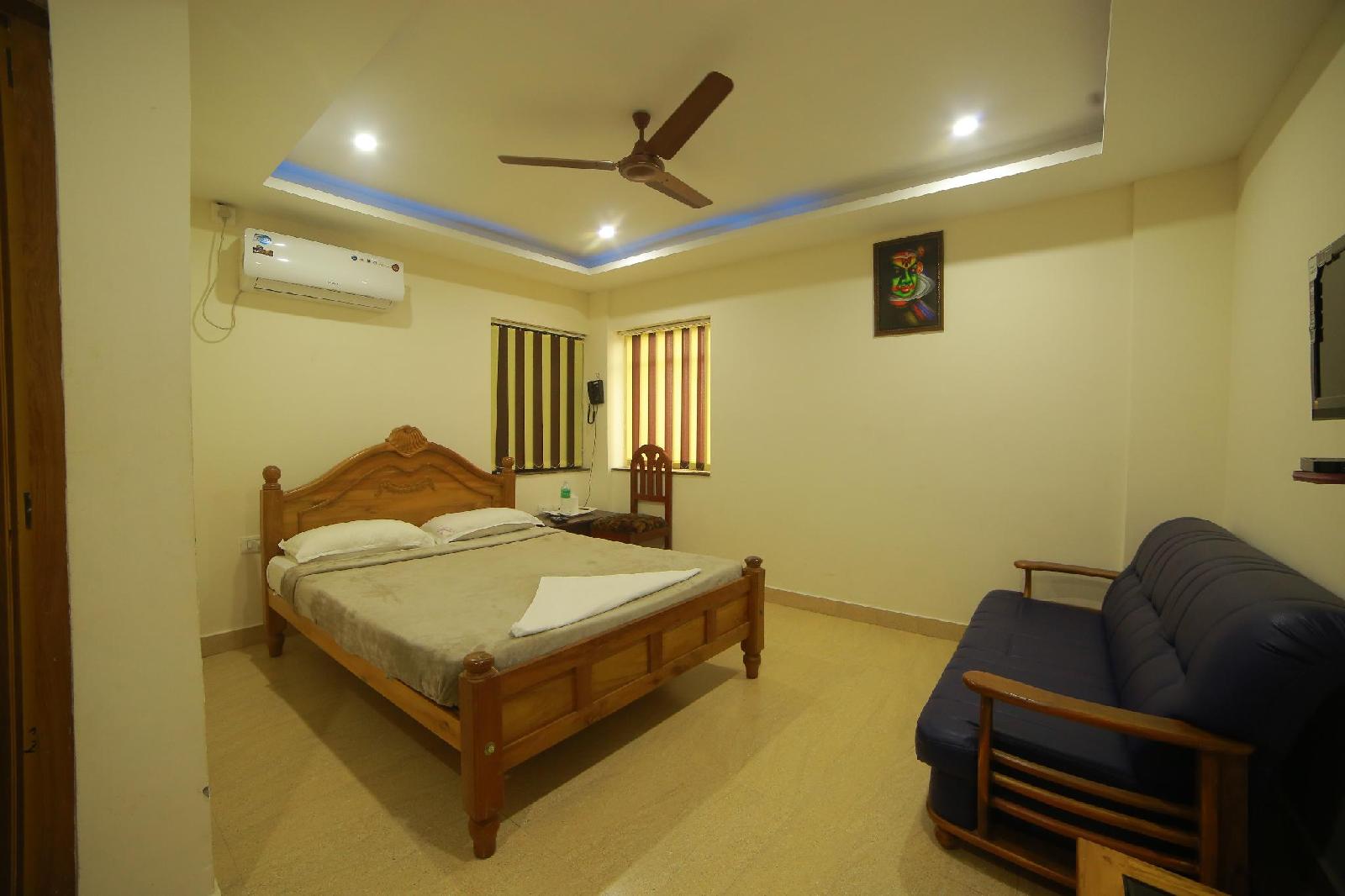 Located in Guruvayur, Hare Krishna Inn is minutes from Guruvayur Temple and close to Punnathur Kotta Elephant Camp.Rooms Make yourself at home in one of the 36 air-conditioned guestrooms. Rooms have private balconies or patios. Complimentary wireless Internet access keeps you connected, and cable programming is available for your entertainment. Bathrooms have showers and complimentary toiletries.Amenities Make use of convenient amenities, which include complimentary wireless Internet access and tour/ticket assistance.Dining Take advantage of the hotel's 24-hour room service.Business, Other Amenities Featured amenities include dry cleaning/laundry services, a 24-hour front desk, and luggage storage. Guests may use a roundtrip airport shuttle for a surcharge, and free valet parking is available onsite.