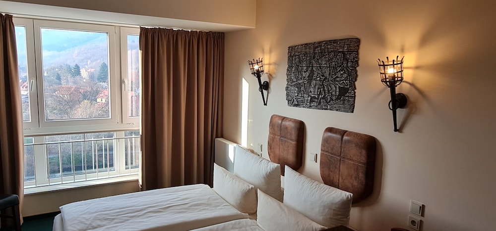 With a stay at Hasseröder Burghotel in Wernigerode, you'll be in a national park and within the region of Glass Manufacturer Harzkristall. This hotel is within close proximity of Wernigerode Town Hall and Museum of Aviation and Technology. Make yourself at home in one of the 162 guestrooms featuring free minibar items and flat-screen televisions. Complimentary wireless Internet access keeps you connected, and satellite programming is available for your entertainment. Private bathrooms with showers feature complimentary toiletries and hair dryers. Conveniences include phones, as well as safes and complimentary bottled water. Pamper yourself with onsite massages, body treatments, and facials. If you're looking for recreational opportunities, you'll find a nightclub and a health club. Additional amenities at this hotel include complimentary wireless Internet access, gift shops/newsstands, and a hair salon. For lunch or dinner, stop by Der Burghof, a restaurant that specializes in international cuisine. You can also grab snacks at the coffee shop/café. Relax with a refreshing drink at one of the 3 bars/lounges. A complimentary hot/cold buffet breakfast is served daily from 7 AM to 10 AM. Featured amenities include a 24-hour front desk, multilingual staff, and luggage storage. A train station pick-up service is provided at no charge, and free self parking is available onsite.