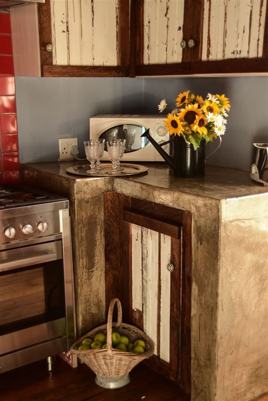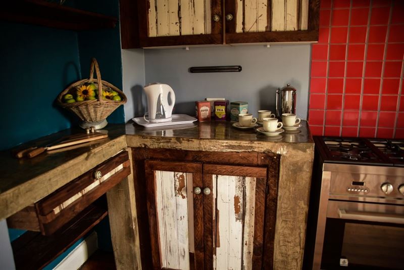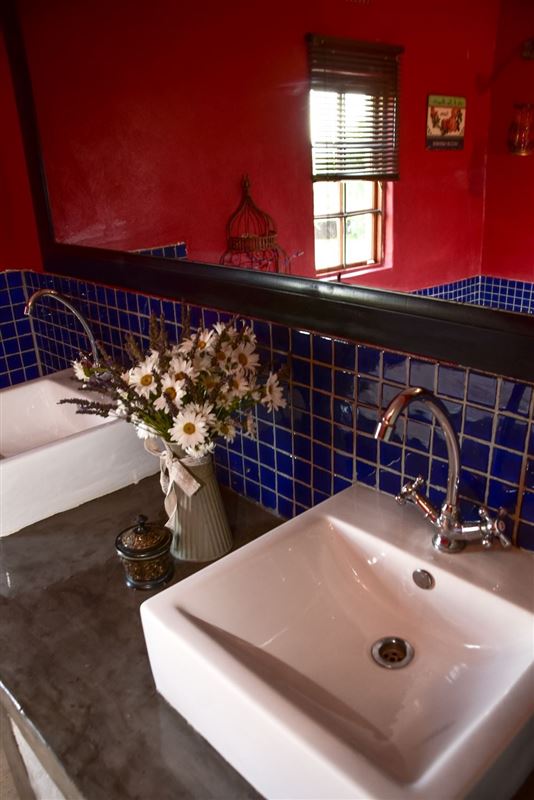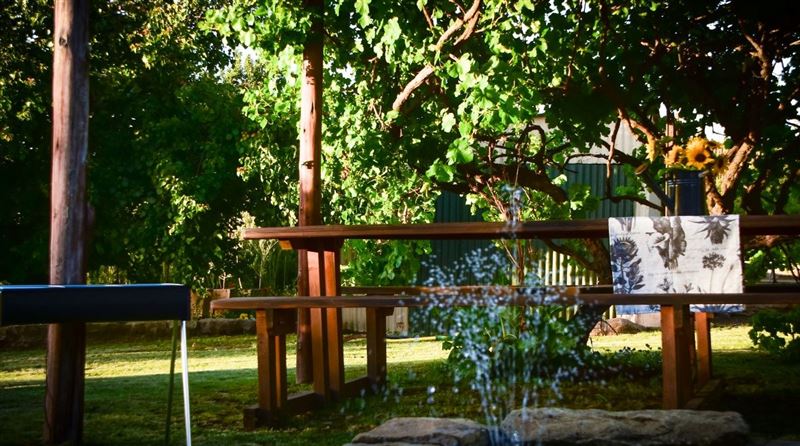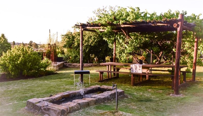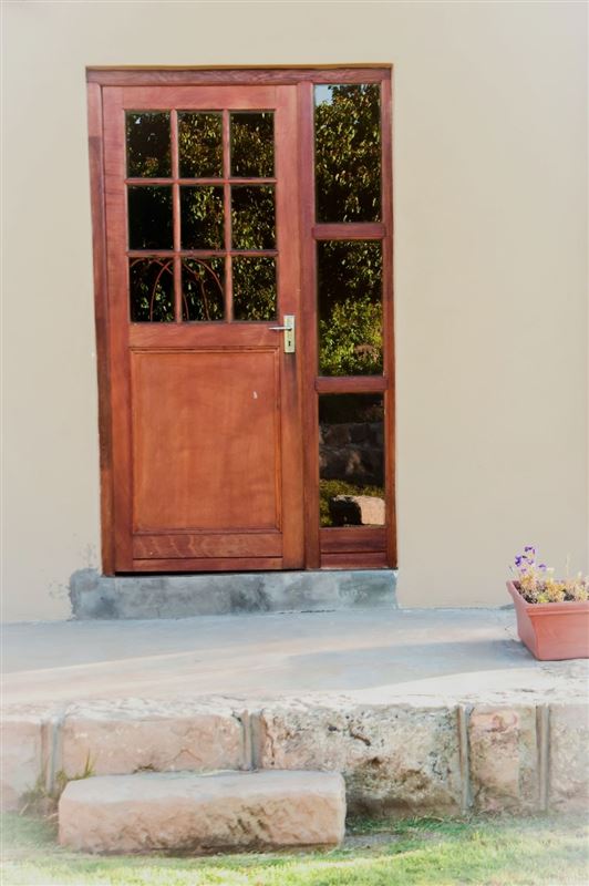 Herb House is a three-bedroomed, one bathroom (separate toilet) selfcatering house, situated on a large plot in a quiet corner of Fouriesburg and sleeps 6 persons. Furnished in French country style, the house also features wooden floors and fully equipped kitchen with full size gas stove and oven as well as microwave. A separate scullery makes for easy living whilst on vacation. The comfortable lounge boasts two French doors that open onto the outside barbeque area for relaxing summer days and for winter, there is a comfy fireplace inside.Full size dining room seats five and has a Victor