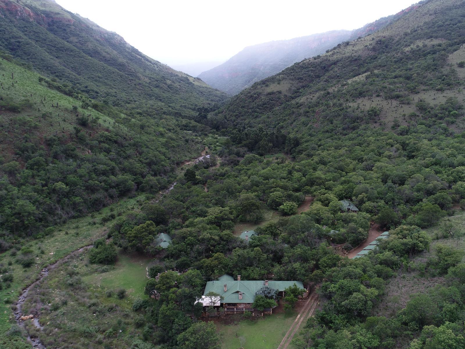 The lodge is only available to groups of 10 people or more. Heysbrook Country Lodge is an exclusive country lodge, set in a secluded valley of 1300 hectares, which becomes a gorge on the Mpumalanga escarpment. Despite its privacy, the entrance to the property is directly off the N4 highway, one kilometre east of Waterval Onder, below the Elands falls.All bedrooms are approximately 50-square meters and have private views. The rooms have two single beds or one king-size bed. Each en-suite bedroom has a fireplace, and are generously spaced apart from the lodge and other bedrooms. Ther