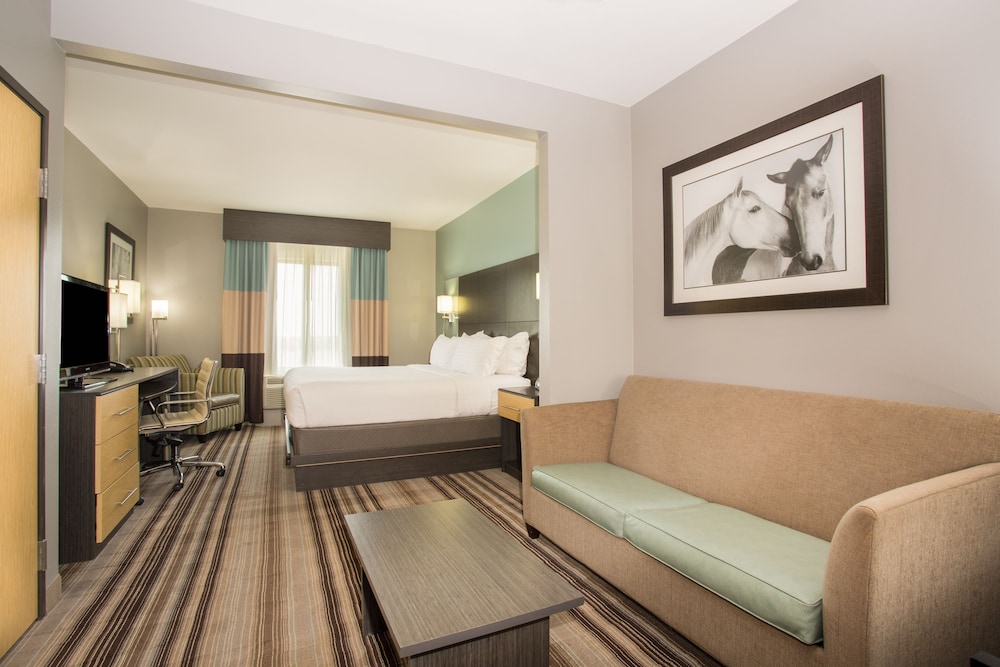 Enjoy a luxurious stay at the Holiday Inn Express Hotel & Suites West with a premier location close to the Amarillo Medical District. Conveniently located on the West side of Amarillo, Texas, the hotel is accompanied by some of Amarillos finest dining as well as the United Artist Movie Theatre. Whether a juicy steak from Saltgrass, Sushi at Kabukis Japanese Steakhouse, Johnny Carinos famous Italian cuisine, Cafeteria style dining at Furrs, or La Plazas Mexican food is your choice of multiple restaurants are within minutes from this Amarillo Hotel. Amarillos well-known Cadillac Ranch and Westgate Mall are within minutes. The provided amenities and atmosphere are unmatched. Each room boasts a wet bar, refrigerator and microwave. The heated salt water pool, hot tub and smoke-free environment are just the start of our Eco friendly based hotel. The spacious Fitness Center houses a variety of equipment for your individual needs including free weights and assorted cardio equipment. Fiber optic technology allows for faster internet speeds, increasing the efficiency of your business or personal related needs. The professional Business Center and dynamic Meeting Room space offer ease to the traveler. The copious Meeting Room is equipped with a 55 inch HD and easy plug system. Enjoy a true West Texas experience on your next vacation or business trip at the Holiday Inn Express & Suites West in Amarillo, Texas, a great hotel guests love.