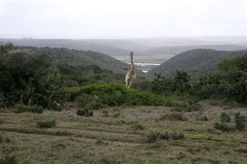 The cottage is situated beside the Kariega River on the Port Alfred side of Kenton on Sea. It is a small cottage consisting of a main bedroom, an open plan lounge, dining and kitchen as well as an enclosed patio.The cottage can sleep up to six people. There is a sleeper couch in the lounge that sleeps two. There is one shower room with a toilet and a hand basin. There is a counter to eat at but no dining room table and chairs.outside there is a table with chairs and braai facilities. The views and the quality of life are exceptional. There is a view of the giraffes and