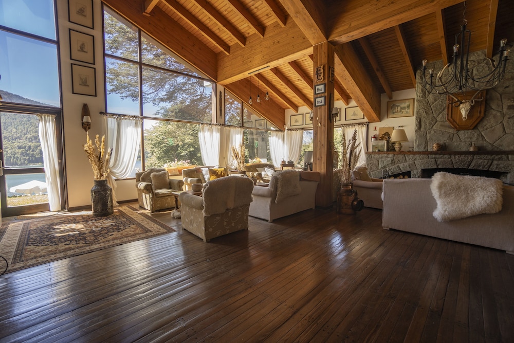 The hotel is located within reach of urban conveniences, but far from the noise. Guests are only ten minutes from the community centre of San Carlos de Bariloche, and five minutes from the base of Cerro Catedral, the most important winter tourism location and international ski centre of Latin America. The hotel is situated in Nahuel Huapi National Park, beside the clear water of Gutiérrez Lake and across from Arelaunquen Villas. San Carlos DeBariloche International Airport is about 22 km from the hotel.The elegance and comfort are present even in the smallest details of this family-friendly ski hotel. For the hotel's architecture, design and decoration, stone and wood were used in combination with details of romantic Europe. There are also great views of Gutierrez Lake. The hotel consists of a total of 12 rooms. Guests are welcomed into a lobby with 24-hour reception and check-out services. Facilities include a hotel safe, cloakroom, TV lounge, café, bar, restaurant, conference facilities, WLAN Internet access, room and laundry services, a car park and garage.The large and exclusive en suite rooms are delicately decorated, combining good taste, maximum comfort and marvellous views of the lake and the mountains. Features include a shower, bath, hairdryer, direct dial telephone and safe. Triple rooms are always composed as follow form (+ extra bed).The hotel has excellent facilities and can reserve, coordinate and carry out recreational, sporting or adventure activities. Guests can also relax and unwind in the solarium or gym.The hotel serves a breakfast buffet.