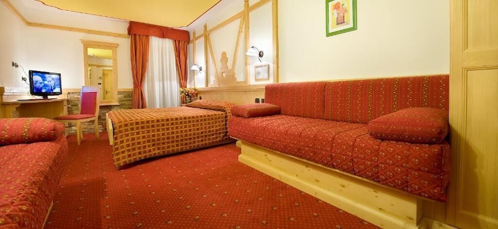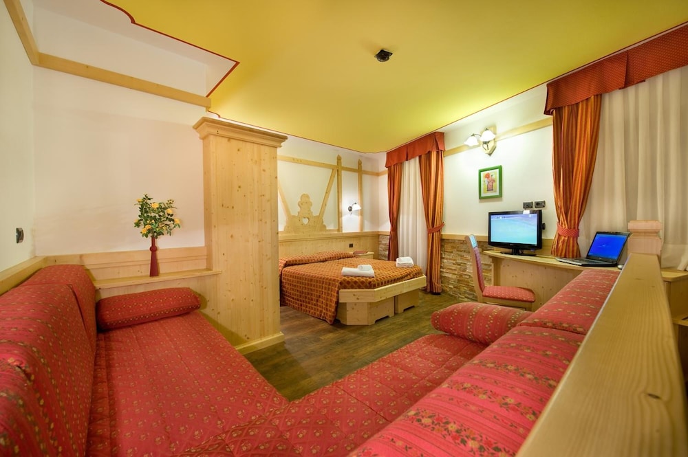 The Adamello is surrounded by the natural beauty of Stelvio National Park and Adamello-Brenta Regional Park. During winter, it provides a free shuttle to the ski lifts.The hotel is located just 300 m from the centre of Passo Tonale and the ski-lifts.Adamello's restaurant boasts a panoramic dining room and offers traditional Italian dishes and a wide selection of fine wines.Our 42 rooms (devided into 3 categories according to the furnishment) and the 8 brand new Family Suites can comfortably host from 2 up to 6 people, thanks to the generous sizes of the rooms.Naturally, all our small guests are the protagonists: basic easy services and some particular attentions to their needs will help families to organize the whole day, making it comfortable and cheerful, both winter