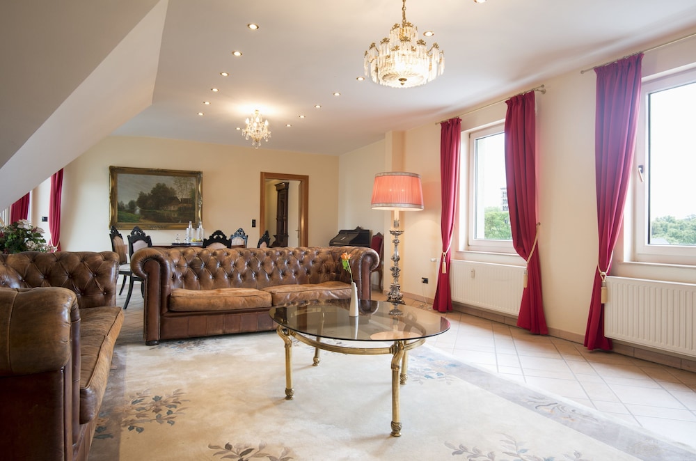 This 4-star hotel is located on the Luisenplatz square in central Potsdam next to Park Sanssouci. It offers elegant rooms with free Wi-Fi and Sky satellite channels.In-room facilities at the Hotel am Luisenplatz include a minibar safe desk and slippers.A large breakfast buffet is available. Guests can even enjoy breakfast on the summer terrace overlooking Luisenplatz and Potsdam's Brandenburg Gate.Steak dishes are served in the hotel's El Baron restaurant. The Wiener Restaurant & Café offers Austrian specialities.Hotel am Luisenplatz also has a sauna and a relaxation area.The hotel offers private parking for an extra fee. Potsdam Main Station is a direct bus or tram ride away.