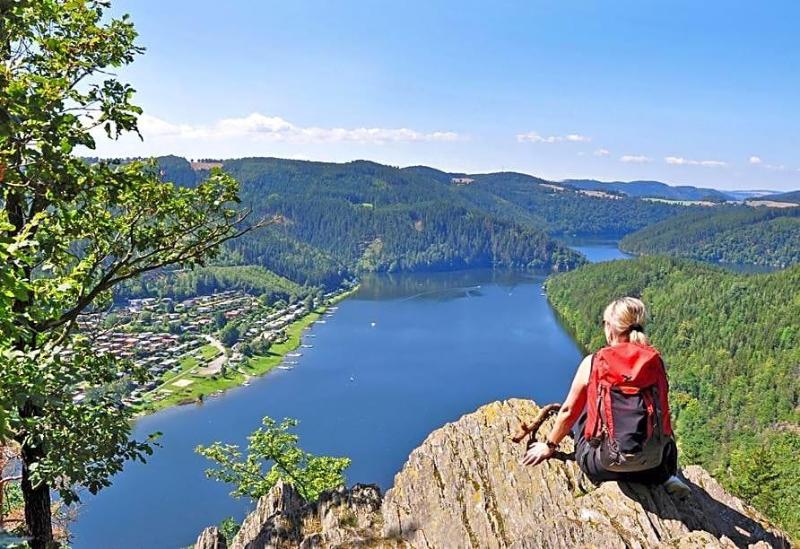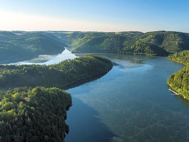 Beautifully located at the Thuringian Sea, an accumulation of several storage lakes, you find the charming Hotel Am Schlossberg. The largest of these storage lakes, as well as the River Saale, start right in front of the hotel. This family run hotel is less than 30 minutes from the A4 and A9 motorways. The attractive cities of Erfurt and Oberhof are only one hour away by car.Thanks to the wonderful cycling and hiking paths in our region, the hotel is the ideal starting point for long walks, hiking and cycling tours.