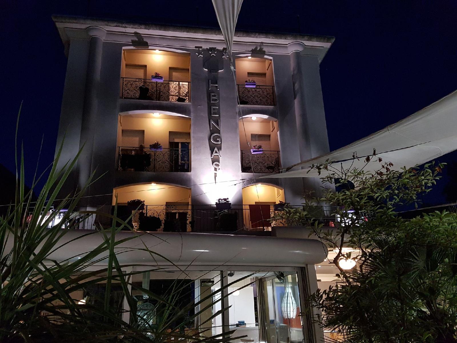 Hotel Bengasi is completely restructured. Situated in the most central part of Rimini beach, 100mt from the sea, inside a large park with bike way that in a few minutes is possible to reach the centre of ancient Rimini and permits quite walks.