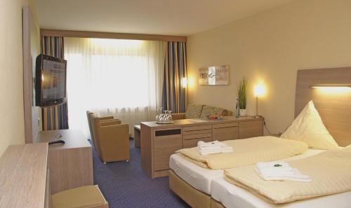 Scenically located in the quiet village of Epe this family-run hotel features a large terrace with garden a fish pond and free WiFi. The historic city of Gronau is just 3.5 km from Hotel Bügener.These bright and modern rooms are stylishly decorated with contemporary furnishings. Each room features cable TV telephone and a private bathroom with complimentary toiletries.A hearty breakfast buffet is provided daily and the restaurant also serves home-style and traditional German cuisine. Guests are invited to dine outside on the sun terrace in summer months.Dreiländersee Lake is 8 km from Hotel Bügener and Bad Bentheim with thermal baths and a popular castle is a 20-minute drive. The Factory Outlet Center in Ochtrup is 13 km away.Epe (Westf) Train Station is 1.5 km from the hotel and the A31 motorway is a 7-minute drive away. Free parking is provided.