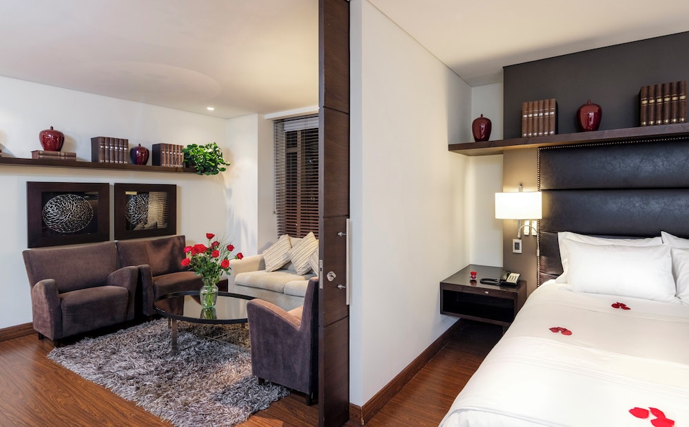 Located in the centre of Bogota, this city hotel is situated close to clinics, museums, and shopping centres. It is also conveniently located near the city's business districts, making it an ideal destination for business travellers. Guests can access the city centre in around a 10-minute drive, and visit restaurants, bars and pubs located some 5 minutes' walk away. The nearest local transport links are to be found around 200 m from the hotel, and it is close to the city's airports.Built in 2011, this hotel is the epitome of elegance and modernity. The excellent facilities and impeccable service are designed to ensure that each guest will take home unforgettable memories of their holiday. It is situated close to numerous attractions and offers recreational facilities. Other useful amenities include meeting/banquet and conference facilities, a business centre, a 24-hour concierge service, a 24-hour reception, room service, a library and much more. A 24-hour check-out service is provided in the lobby, as is a hotel safe and currency exchange facilities. A cloakroom and lift access are also available for guests' convenience, and relaxation comes in the form of the TV lounge. Food and drink are served in the bar, restaurant, café and pub. Guests can stay connected thanks to the wireless Internet access provided. A laundry service is also available, as is bicycle hire. Vehicles can be left at the hotel's car park or garage.