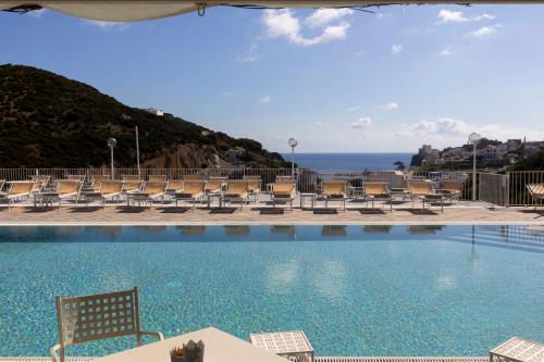 The 76-room hotel was built in keeping with the Ponza style of architecture, complete with pastel colours and white domes. Fully air-conditioned, it features a lobby with a reception where friendly staff are on hand to arrange boat, car and scooter rental. Babysitting services are also offered and there is a hotel safe where guests can store their valuables. There is a restaurant on site and room service is available. A free shuttle service to/from the harbour is also offered (for arrivals this must be requested at the time of booking). Guests arriving by car may use the hotel car park.
