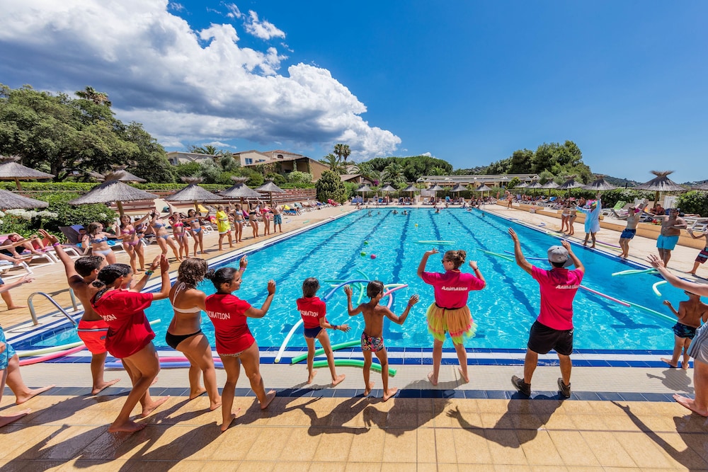 The hotel in the heart of the seaside resort of Porticcio, in a beautiful wooded and floral 10ha area, along a beautiful sandy beach. The rooms are divided in two buildings bordering plaget.Le breakfast, sweet / savory buffet and buffet dinner at thème.Le bar, located on a beautiful terrace is ideal to cool off and enjoy cocktails and glaces.Sur spot: a large swimming pool with its landscaped solarium and a paddling pool for children.In a natural exceptionally preserved, coastline alternates coves and long beaches of golden sand, while villages conveniently located mid mountain, offer an intimate face of Corsica.