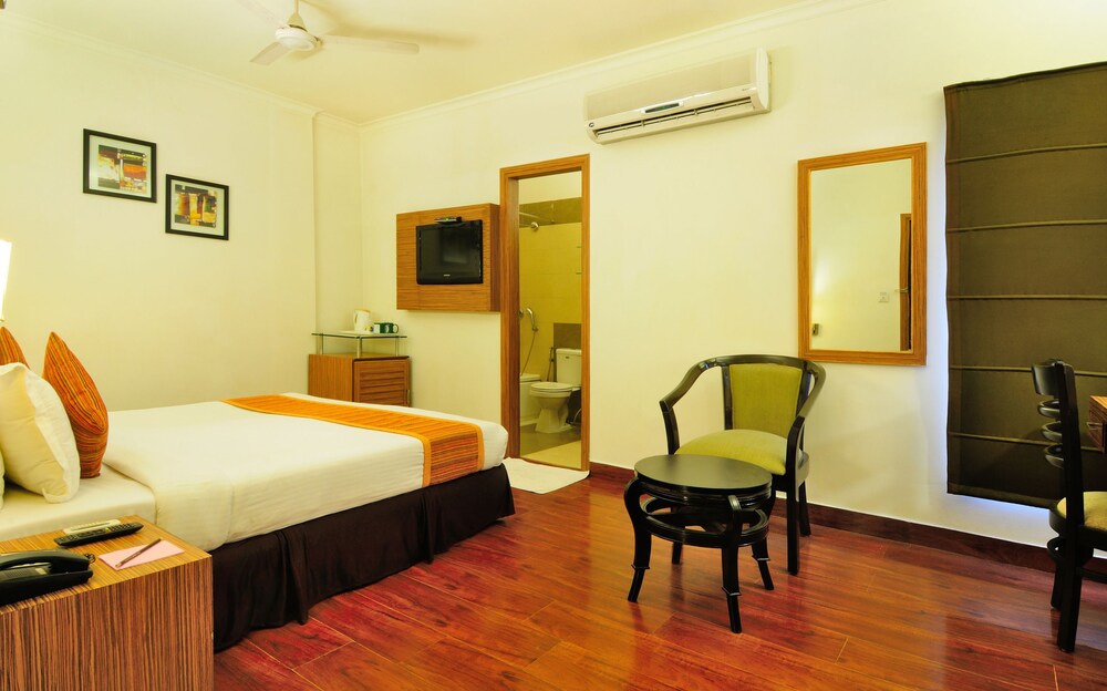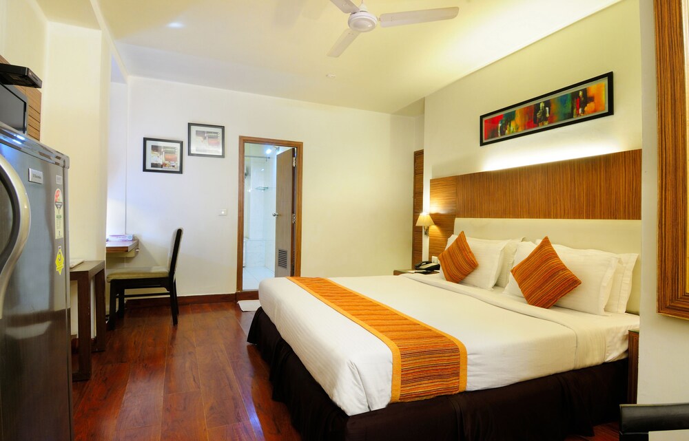 Property Location In the heart of Gurgaon, Hotel Crossroads is close to Ayyappa Temple and Ambience Mall. This 4-star hotel is within close proximity of DLF Cyber City and Sahara Mall.Rooms Make yourself at home in one of the 48 air-conditioned rooms featuring minibars and LCD televisions. Complimentary wireless Internet access is available to keep you connected. Conveniences include desks and coffee/tea makers.Rec, Spa, Premium Amenities Take advantage of recreation opportunities such as a 24-hour fitness center, or other amenities including complimentary wireless Internet access and concierge services. This hotel also features babysitting/childcare surcharge, wedding services, and a television in the lobby.Dining Satisfy your appetite at the hotel's restaurant, which serves breakfast, lunch, and dinner. Dining is also available at a coffee shop/cafe, and 24-hour room service is provided.Business, Other Amenities Featured amenities include a business center, a computer station, and express check-in. Planning an event in Gurgaon? This hotel has 2690 square feet 250 square meters of space consisting of a conference center, conference space, and meeting rooms. For a surcharge, guests may use a roundtrip airport shuttle available 24 hours and a train station pick-up service.