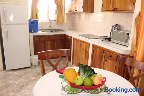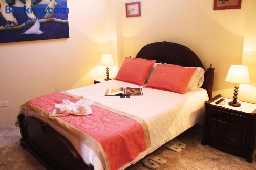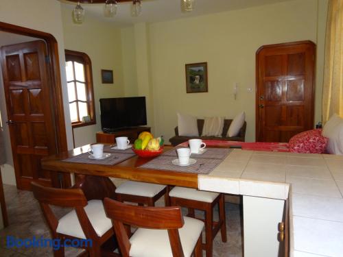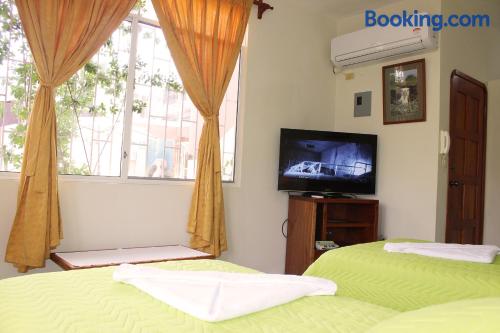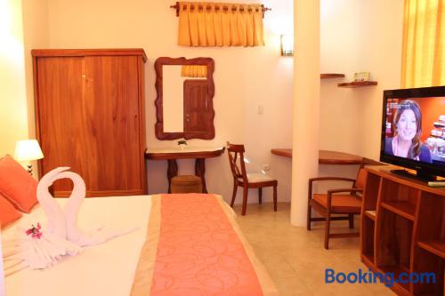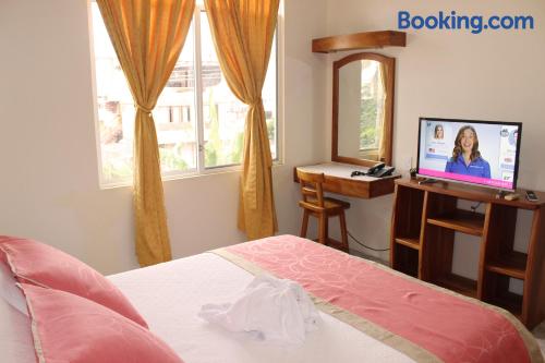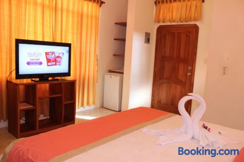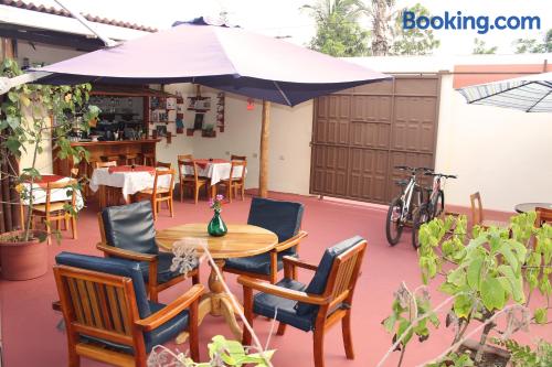 Located 500 metres from the Pacific Bank in Pichincha Suites del Sol offers free Wi-Fi and breakfast in Puerto Ayora. Tortuga bay is 3 km from the property.Providing a tranquil environment the spacious rooms in Suites del Sol feature private bathrooms air conditioning flat-screen TVs and minibars.Guests at Suites del Sol can relax in the on-site garden. Room service is available.Suites del Sol is 2 km from Ningas bay and 40 km from Seymour airport.