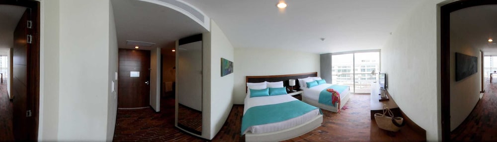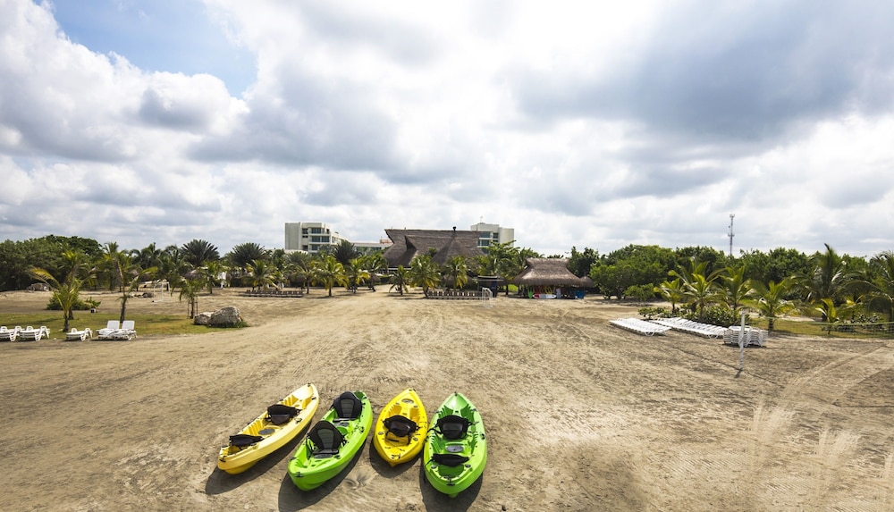 ONE OF THE MOST SPECTACULAR RESORTS OF THE CARIBBEAN AND WITH ALL INCLUSIVE.Located 12 kilometers from the Rafael Núñez International Airport and 17 kilometers from the historic center of Cartagena de Indias, a Colombian city declared a World Heritage Site by UNESCO. The hotel is located in the northern area of Cartagena, epicenter of the new urban developments of the city, between the fishing village of Manzanillo del Mar Bay and the exclusive Karibana golf course, which has one of the best golf courses in Golf Par 18 of the country. ESTELAR Playa Manzanillo Hotel is located on the beachfront of the Caribbean Sea. Designed with a contemporary landscape style, it enjoys lush garden areas on a 4.5 hectare site. Throughout the day, the hotel offers its guests 8 free bus services to the walled city center.