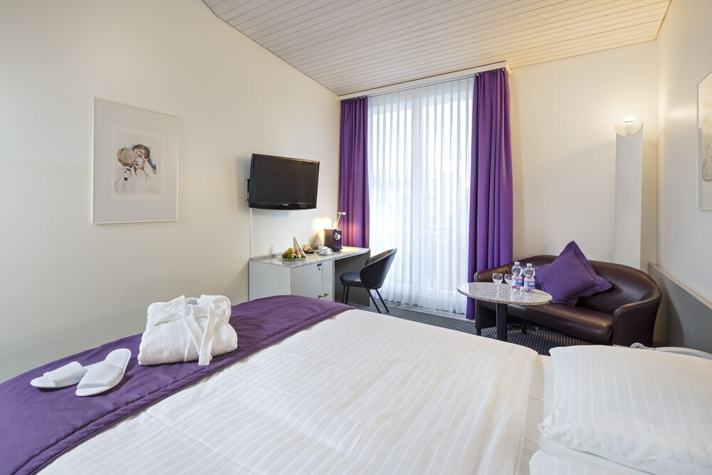 A 5-minute drive from Kloten Airport this 3-star hotel offers free airport transfers soundproof rooms with free Wi-Fi and free parking during the stay. Kloten Train Station is 100 metres away.All rooms at the Fly away feature a work desk and cable TV. The windows can be opened.Home-made Italian specialities including pizzas from the wood-fired oven are served in the Fly away's restaurants and on the terrace during lunch and dinner time.Guests benefit from free access to a fitness centre in a partner hotel located within a 5-minute walk from Fly away. A public swimming pool a rope course and a Vita Parcours outdoor fitness trail are also located next to the public pool. These can be used at an additional charge.A shopping centre restaurants bars a cinema and a night club can be reached on foot. Zurich’s city centre is a 15-minute train ride away. Free airport transfer is available.