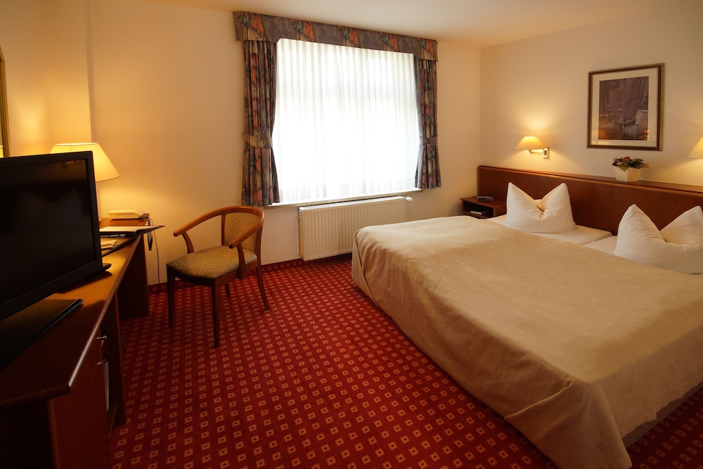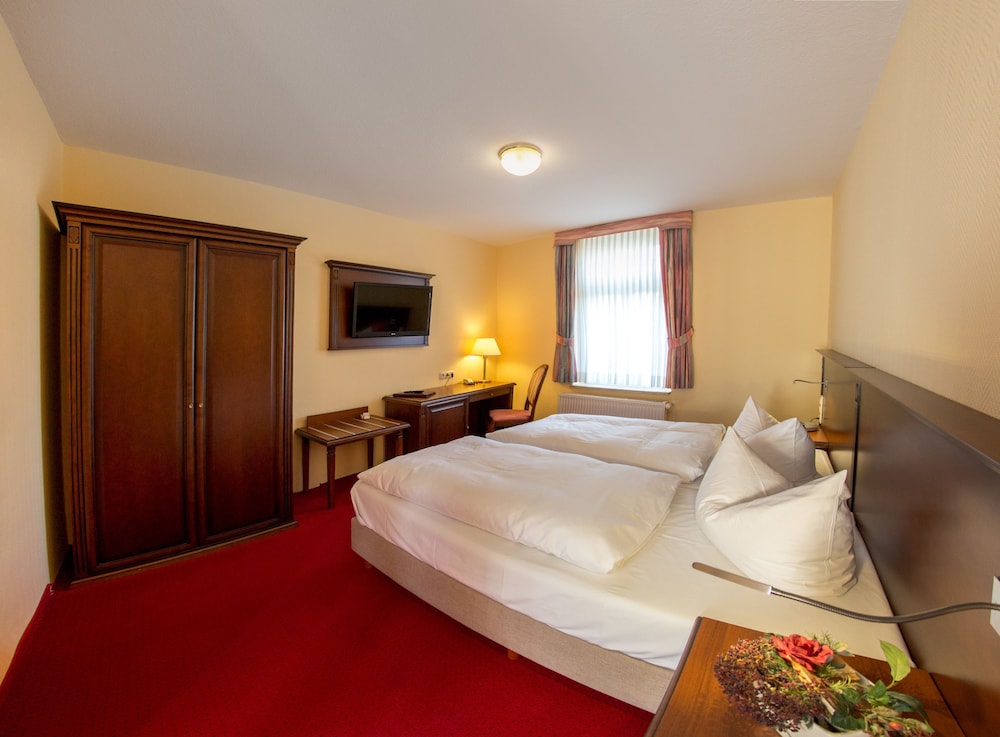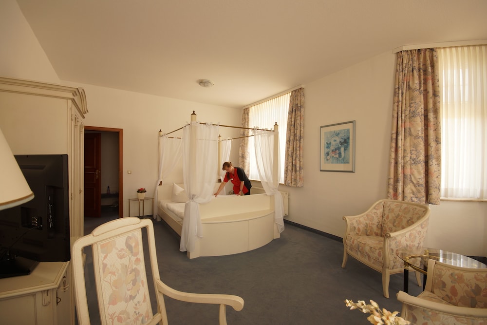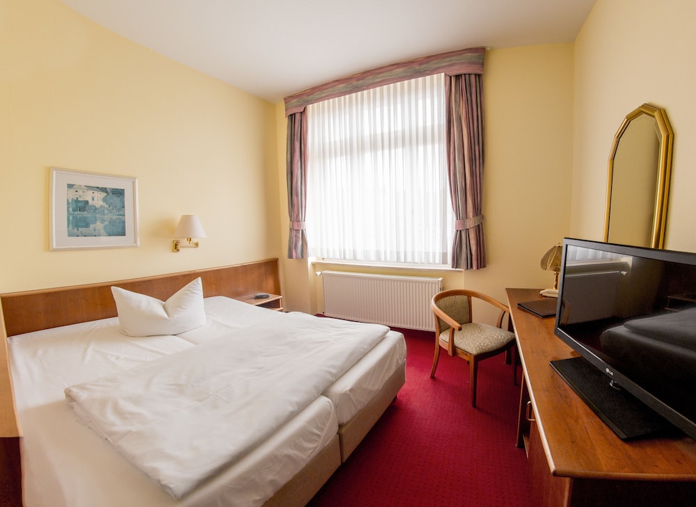 This stylish 4-star hotel is situated in the heart of Bernburg directly on the River Saale. Hotel Fürsteneck offers free WiFi.Rooms at Hotel Fürsteneck Bernberg are classically furnished. Every room includes a TV and a private bathroom.A buffet breakfast is provided each morning. The bar on the ground floor is a great place to relax.On-site parking is free for guests at Hotel Fürsteneck.
