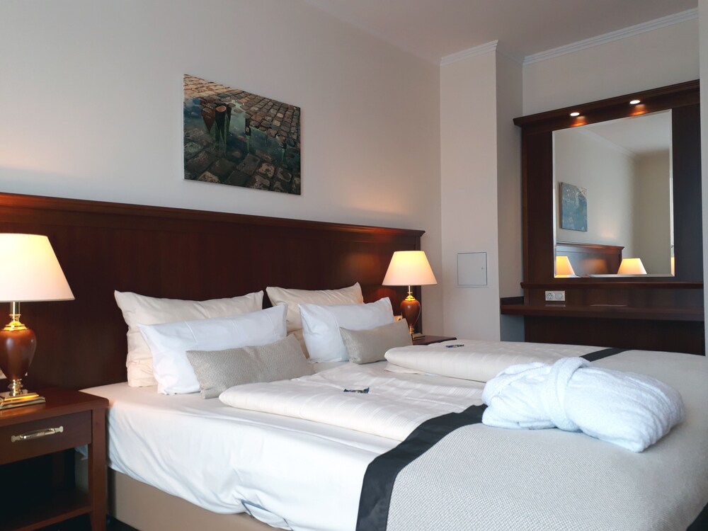 This elegant hotel is just a 5-minute walk from Lübeck Main Station. The Hanseatischer Hof Lübeck offers large rooms and a 1500 m² spa with indoor pool Finnish sauna and steam bath for guests over 16.All rooms and suites at Hotel Hanseatischer Hof are classically furnished and include cable TV and a modern bathroom. Some have air conditioning.The 2 stylish restaurants at the Hanseatischer Hof serve a daily buffet breakfast and a lunch menu with fish dishes and Northern German specialities. Guests can also dine on the garden terrace.The Holstentor Gate and Lübeck's Old Town are a 15-minute walk away from the Hotel Hanseatischer Hof. The A1 motorway is 2 km away.Guests at the Hanseatischer Hof enjoy free use of the pool and sauna area in the Bella Vita spa. Massages and beauty treatments are also available.