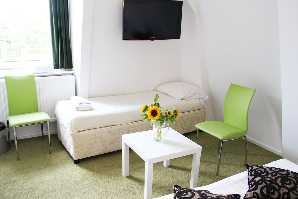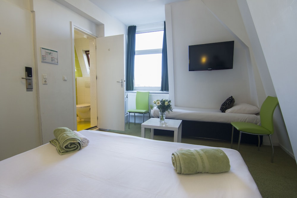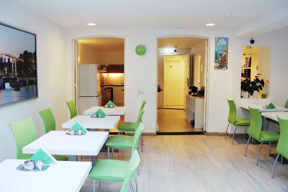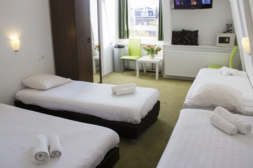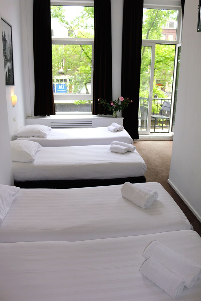 The hotel is situated in a nice trendy residential part of Amsterdam , with very easy access to all the attractions . The hotel is just over the famous Amstel river, very close to the famous Rembrandt Square and the trendy Utrechtsestraat with nice shops and great diversity of restaurants few stops by tram from central station stop Stadhouderskade tram number 4 .