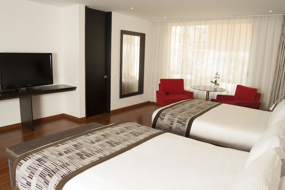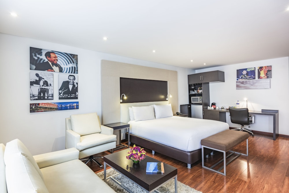 Located in BogotaŽs commercial T Zone area the hotel is decorated with jazz scenes and colorful pictures of famous artists. It offers contemporary accommodations with free Wi-Fi and a wellness spa.The self-catering rooms are located in front of Virrey park and feature a cheerful design with king-size beds. Jazz Apartments have modern kitchenettes and a 42-inch LCD TV. Some feature private balconies and scenic views of El Virrey Park.Guests can dine at the restaurant and lounge bar. A breakfast buffet with fresh fruits juices and rolls is served daily. Due to its central location several restaurants and bars are within walking distance from the apartments.The Jazz is situated only 25 minutes by car from the El Dorado Airport. Free on site parking is provided.