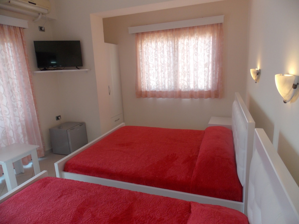 With a stay at Hotel Kompleks Joni in Sarande, you'll be on the beach and within the region of Kalamionas Beach and St. Spyridon Second Beach. This beach hotel is within the region of St. Spyridon First Beach and Butrint. Make yourself at home in one of the 26 air-conditioned rooms featuring minibars and flat-screen televisions. Complimentary wireless Internet access keeps you connected, and cable programming is available for your entertainment. Private bathrooms with showers feature complimentary toiletries and hair dryers. Conveniences include safes and irons/ironing boards, and housekeeping is provided daily. Take in the views from a terrace and make use of amenities such as complimentary wireless Internet access and barbecue grills. Enjoy a satisfying meal at a restaurant serving guests of Hotel Kompleks Joni. Quench your thirst with your favorite drink at a bar/lounge. A complimentary buffet breakfast is served daily from 8:30 AM to 10 AM. Featured amenities include dry cleaning/laundry services, a 24-hour front desk, and laundry facilities. Free self parking is available onsite.