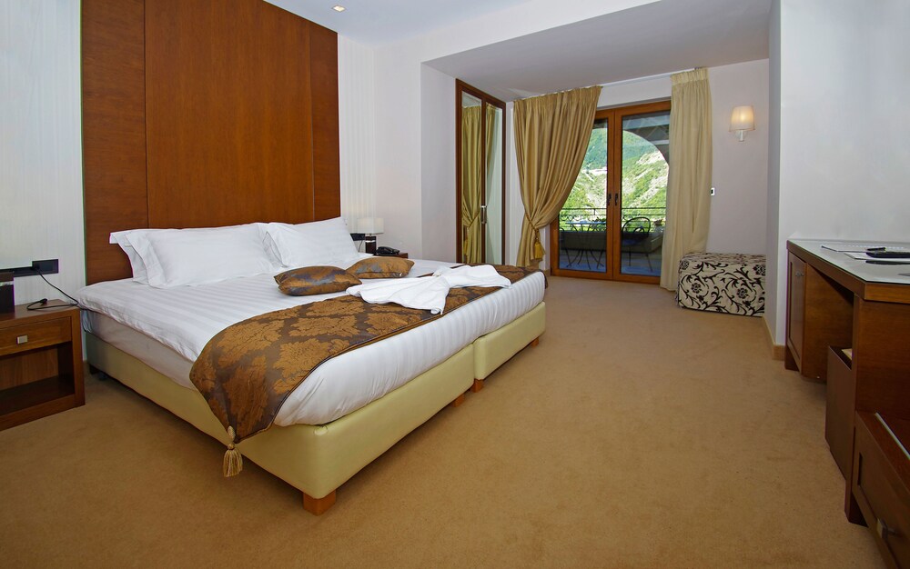 This hotel is situated in Anilio, Ioannina. It is 7 minutes from the picturesque village of Metsovo with its tourist centre and 15 minutes from the ski slopes. It lies 45 minutes from the nearest beach in Igoumenitsa and is very close to the beautiful area of Syvota. Its privileged location means guests can visit ski resorts in Metsovo and Pertouli.Built in 2010, this country house hotel is a charming, stone-built property featuring traditional architecture. It comprises a total of 29 rooms, including 3 singles and 1 suite and is ideal for holidaymakers and business travellers alike. Facilities on offer to guests at this air-conditioned establishment include a lobby area with a 24-hour reception, a hotel safe, lift access and a hairdressing salon. There is a cafe, a bar and a restaurant and guests will appreciate the conference facilities and Internet access. Moreover, the hotel provides a special hall which is fully equipped with all necessary technology and is spacious and elegantly furnished, with capacity for 10 to 545 people. Guests can also take advantage of the room and laundry services. There is a car park and garage parking for those arriving by car.The guest rooms are fully equipped to offer a pleasant and comfortable stay. All come with a private bathroom with a shower/bathtub, cosmetics and toiletries and a hairdryer and offer a king-size or double bed. They are equipped with a direct dial telephone, a plasma TV, wireless Internet access and a safe. Furthermore, a minibar, air conditioning and heating are provided in all accommodation as standard. Most rooms have balconies with a view of Metsovo, while others overlook the garden.The hotel serves a rich American breakfast buffet and features a restaurant with a unique atmosphere.