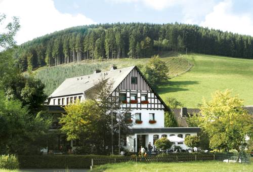 Offering a rural location in the heart of the Homert Nature Reserve Hotel Landhaus Klöckener offers a large sunny garden and a children's playground. Free Wi-Fi and mountain views feature in all the rooms.A wide variety of freshly prepared seasonal dishes are available in the traditional-style restaurant where a daily buffet breakfast is also served. In the evenings guests can relax with a beer in the cosy bar area.Simply furnished rooms come complete with cable TV a refrigerator and private bathroom. Some also include a balcony.Guests can enjoy cycling and hiking in the beautiful countryside or play a round of golf at the Golf Sportclub Sorpesee (3.5 km). Ideal for a day trip is the town of Iserlohn 35 km away.Free on-site parking is provided.