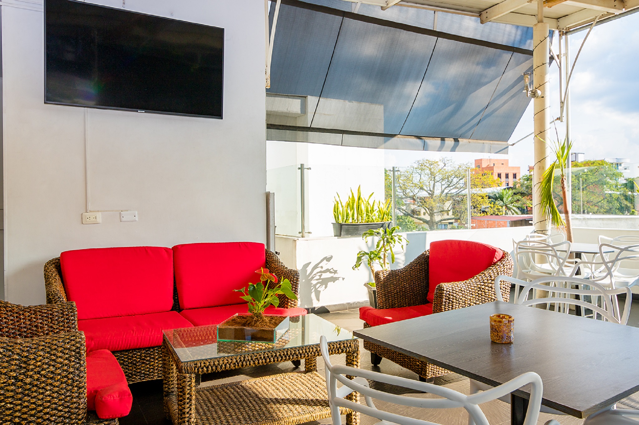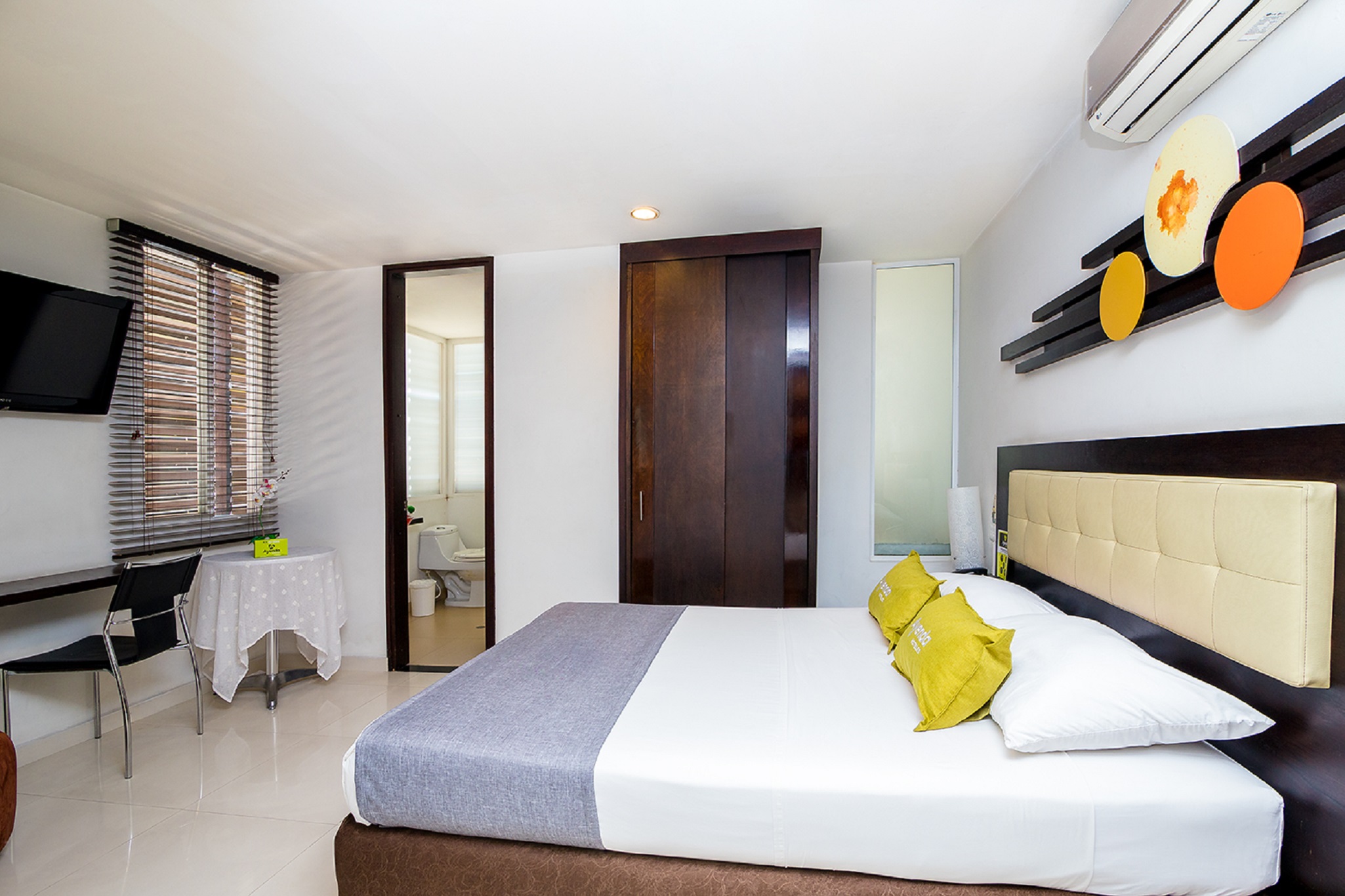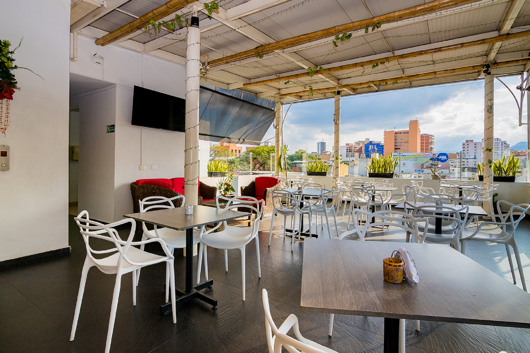 This city hotel is located in the north of Santiago de Cali, in the Granada district. Surrounded by elegant boutiques and cafes, the hotel is close to the financial sector, a few metres from the Zona Rosa and 15 minutes from the Valley Events Centre and Chipichape shopping centre. San Antonio chapel is around 1 km from the hotel, Cerro de la Tres Cruces (Hill of Three Crosses) is approximately 2 km away and the Christ the King statue is roughly 3 km away. The hotel is approximately 30 minutes from Alfonso Bonilla Aragon airport.This air-conditioned hotel offers 20 guest rooms in total and guests are welcomed in a lobby with 24-hour reception and check-out services, a hotel safe, currency exchange facilities, a cloakroom and lift access. The hotel is ideal for hosting any event, with a range of facilities and a capacity for up to 350 people. Guests may wine and dine in the cafe or restaurant.The rooms have everything guests need from a complete en suite bathroom with shower, bathtub and hairdryer, to a double bed and individually regulated air conditioning. Other in-room amenities include satellite TV, wireless Internet access, a radio, safe, minibar and a fridge.Guests may work out in the gym, relax in the steam room, or choose from a selection of spa treatments.A breakfast buffet is served each morning and set menu and à la carte options are available for lunch and dinner.